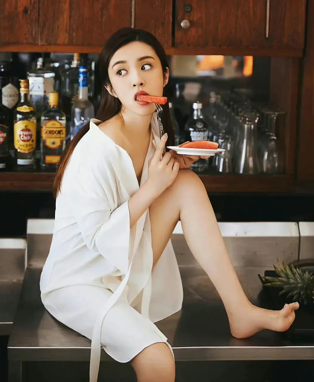 她的身段圆润紧致、腰细腿直、比例舒展,穿紧身裙特别显身段,自带一种成熟妩媚、很有女人味的质感,不刻意瘦,却很耐看。