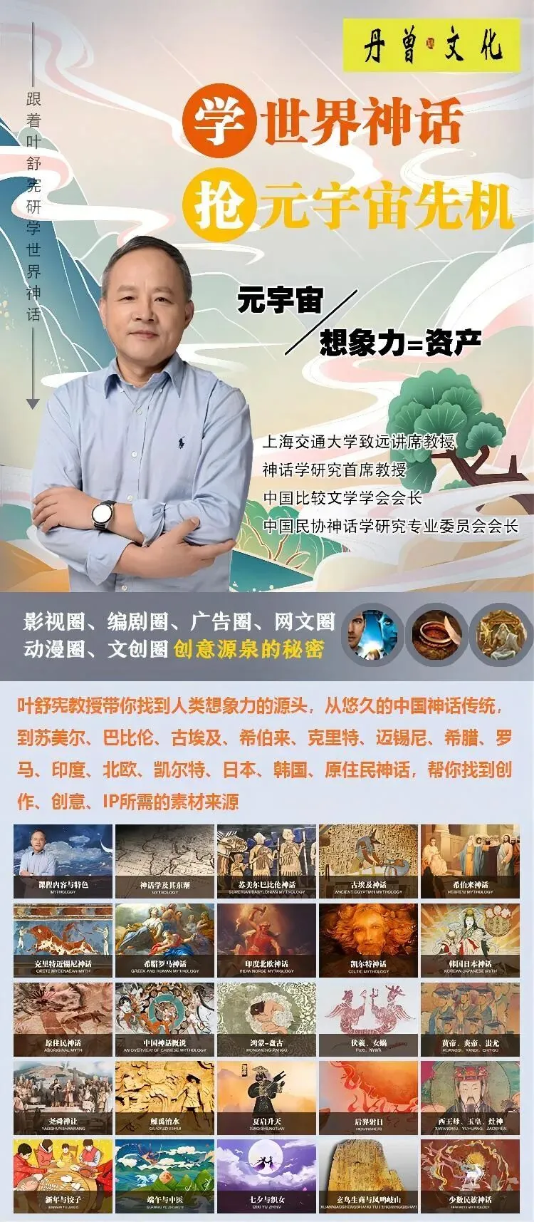 丹曾文化陆续推出上海交通大学致远讲席教授叶舒宪的《世界神话鉴赏》课程精彩片段。