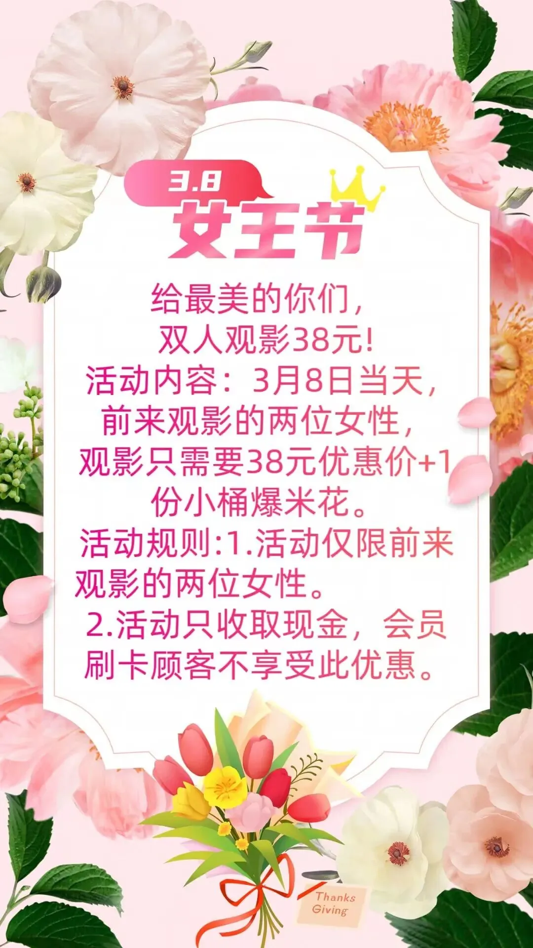 当前位置:首页>美女资讯>女神节:给最美的你们,双人观影38元! 招聘啦!365 好片天天有