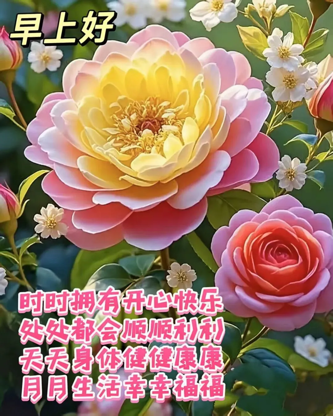 1、早安!在这热情似火的清晨,祝你心想事成,愿你的每一个愿望都能现,每一个目标都能达成。万事如意,生活顺心,每天都有新的惊喜和快乐。早上好!