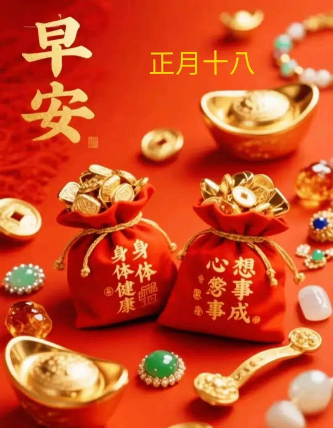 正月十八早晨,捎带给你美好的祝愿,愿你生活愉快;送给你美妙的心愿,愿你好运连连;愿你事业圆圆,万事如意,祝早安!