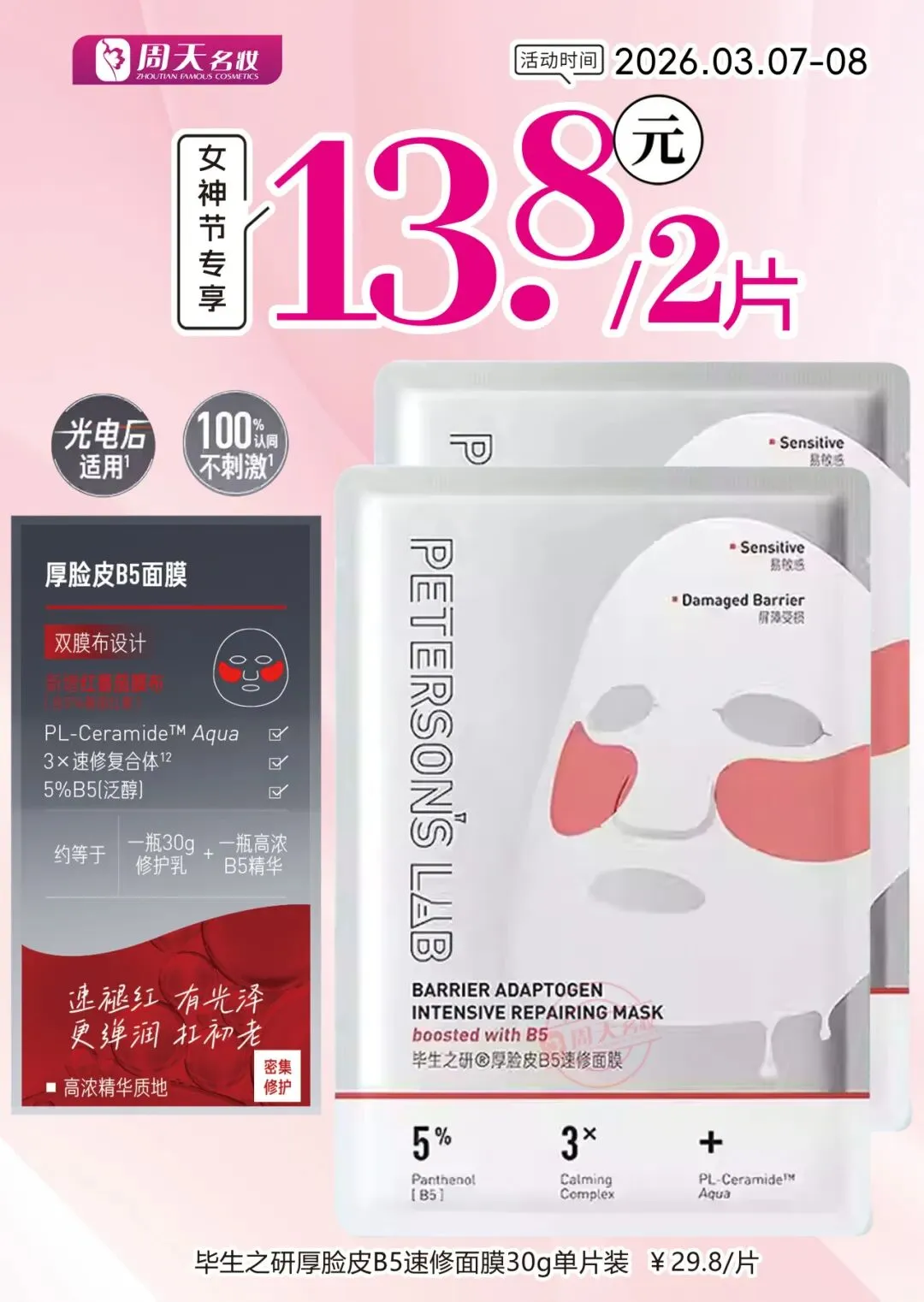 当前位置:首页>美女资讯>【女神节专享】毕生之研厚脸皮B5面膜13.8元2片!