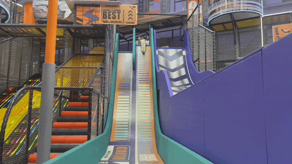 谁说滑滑梯是小朋友的专利呀,这种又刺激又童真的项目,最适合我们大人啦~甘甜是全东北拥有滑梯最多的运动工厂。7m高的不锈钢滑梯(大连唯一),蜿蜒在场馆的一侧,透明的天窗设计,在感受失重感的同时,感受灯光带来的光怪陆离,仿佛置身于时空隧道之中。