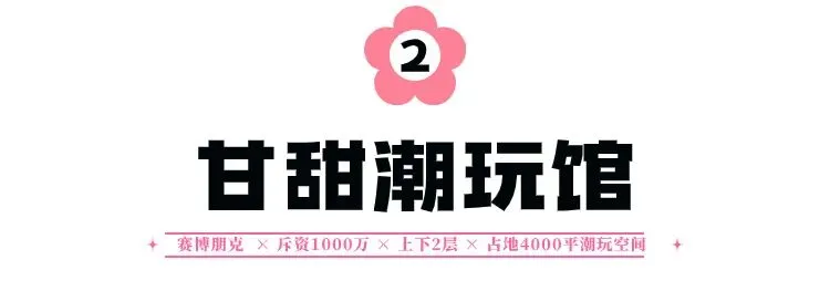首个引入解压馆的潮玩馆,有拳击屋,分娩体验、尖叫屋、拳击屋等解压项目,为心灵承压的打工人群创造一个释放情绪的潮玩空间。