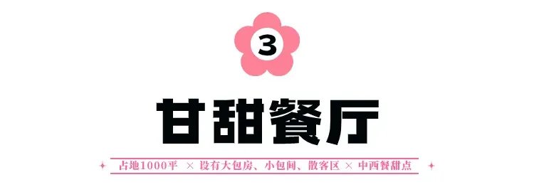 整个餐厅有 1000m²,分为快餐区与包房区,适合亲子出行,好友聚会、团建、年会、毕业典礼等活动。全明就餐环境,舒适度和视野绝佳。而且包间有大、中、小包间,满足不同团建群体的需要。大包房内配有专业LED大屏,混声音响,超大环境,超适合组织毕业典礼或是公司年会,在甘甜一条龙,吃喝玩乐全部搞定!