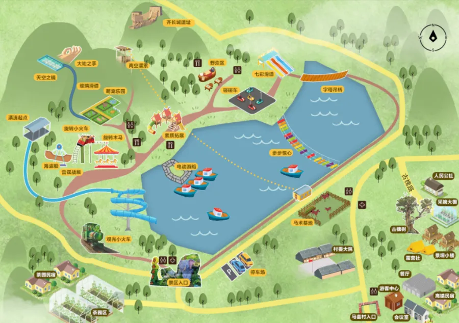 济南市长清区马套将军山度假区,以生态旅游为主线,涵盖垂钓休闲、餐饮食宿和茶园体验等多方面活动,打造集乡村旅游、居家养老、观光采摘、休闲娱乐为一体的旅游度假观光区。