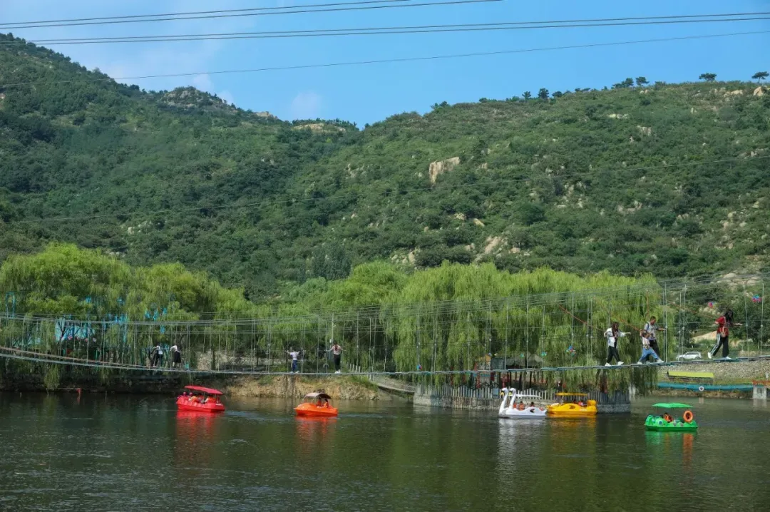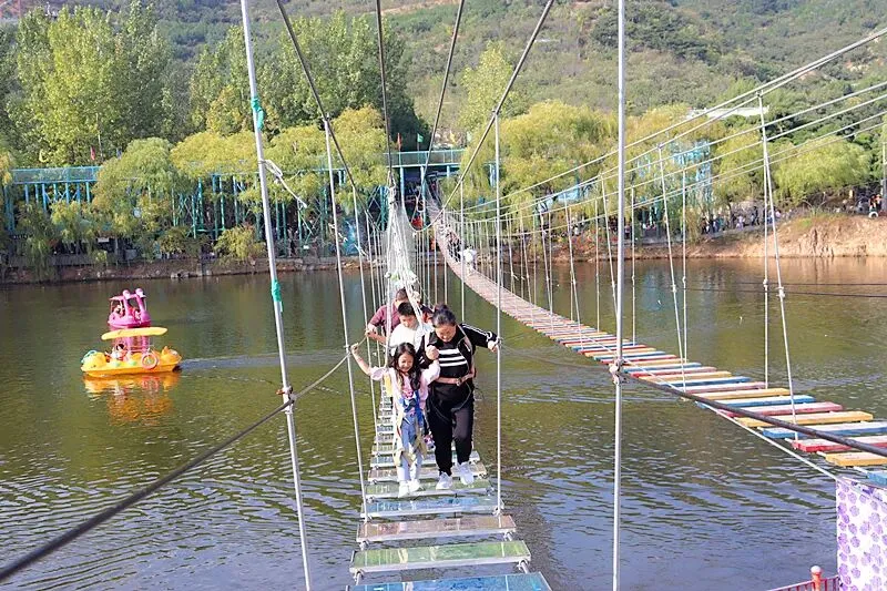水库内的游玩设施十分丰富,内含划船喂鱼、骑马、碰碰车、吊桥迷宫、玻璃栈道、高空探险等体验性游玩项目,能够使游客畅游山水之间。