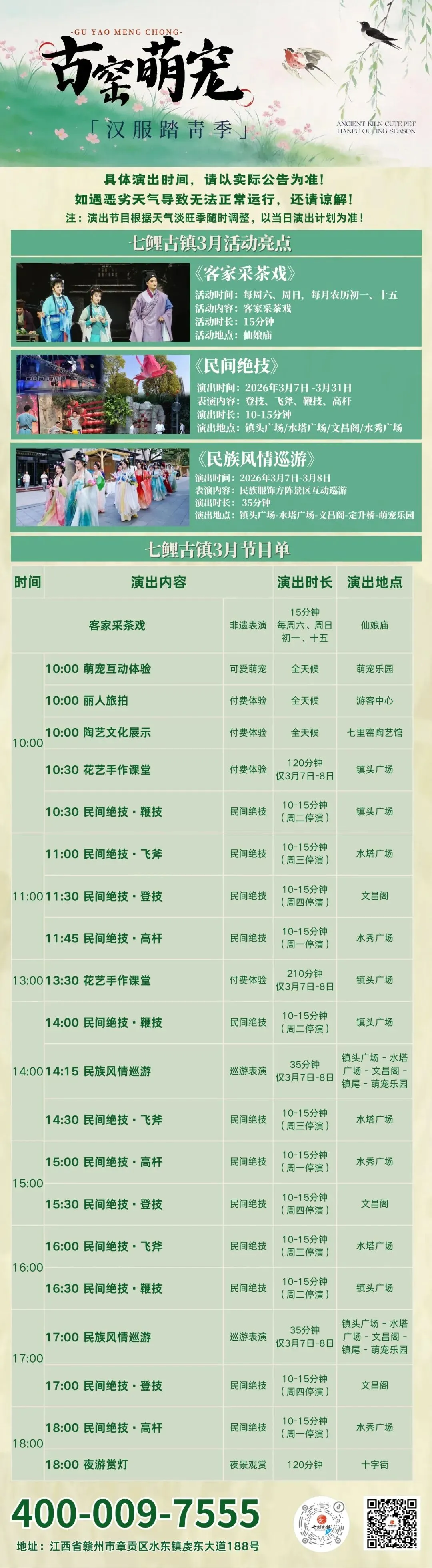 春日正好,胃口大开!来七鲤古镇,不仅有好玩的萌宠、好看的表演还有吃不完的客家风味等你打卡!今天带你舌尖游七鲤顺便预告一波女神节专属福利👇