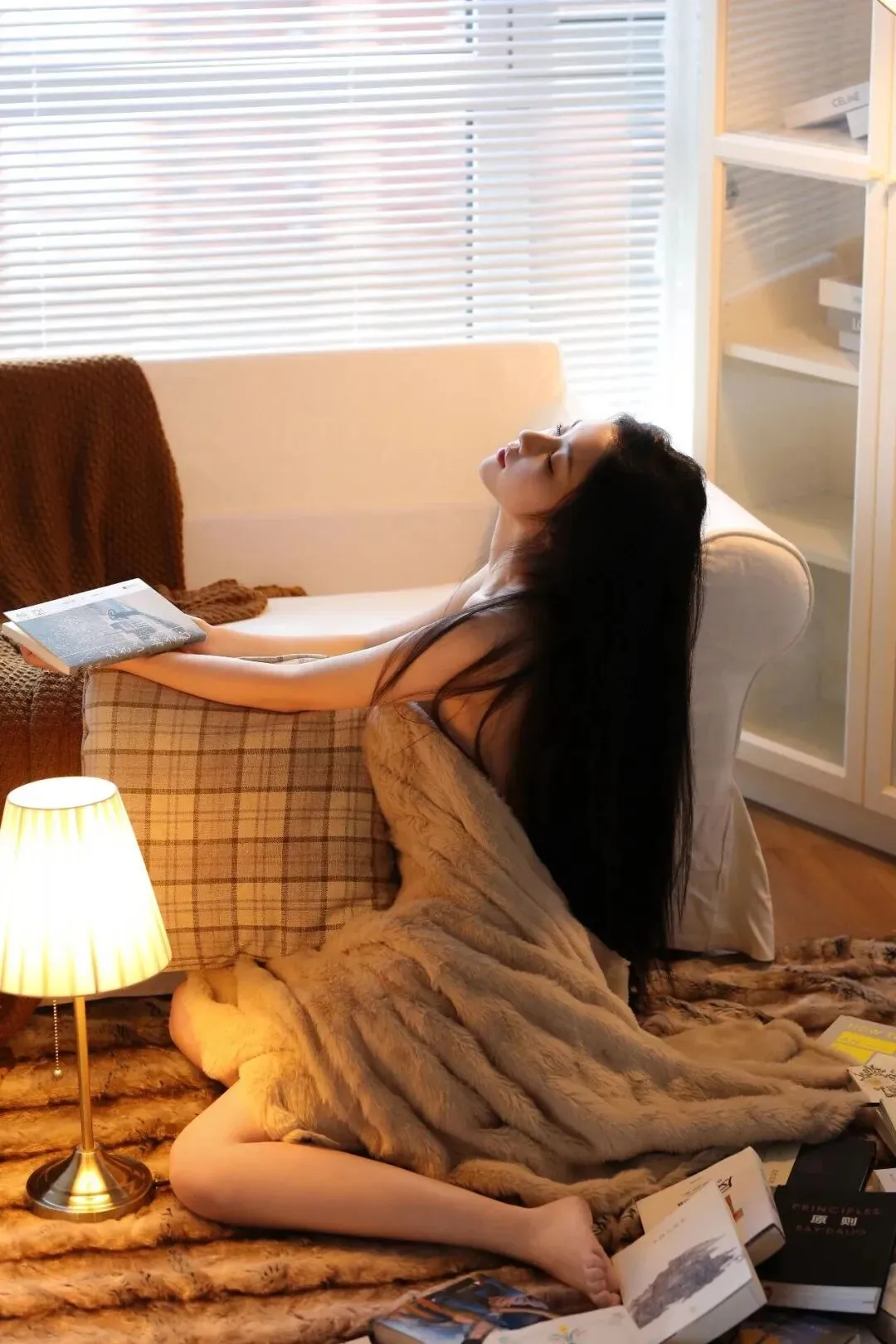 拍这种居家毛绒毯写真的时候呀,记得顺着暖光和道具的感觉来,让肢体舒舒服服地舒展就好。可以试试轻轻撩动头发,或者把书本随意搭在腿上,整个人会更自然。最重要的是和毛绒毯、暖光的温柔感呼应上,照片自然就有那种又慵懒又治愈的氛围,这样拍出来的照片,漂亮气质又温柔,慵懒治愈又氛围感拉满,真的超好看~