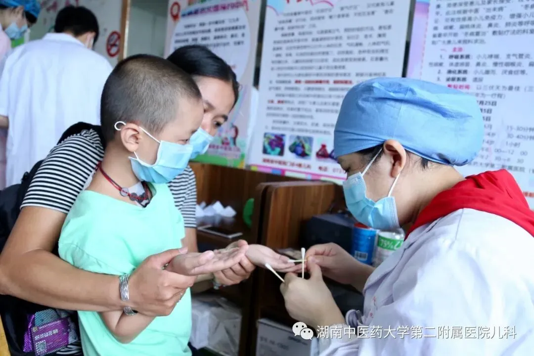开展治疗项目 科室以中医为主,中医多元疗法治疗儿童矮身材、性早熟、肥胖症、小儿急慢性咳嗽、哮喘、肺炎、厌食症、鼻炎、泄泻、外感发热、反复呼吸道感染、汗证、夜啼、疳积、便秘、抽动症、手足口病、猩红热、斜颈、紫癜等方面疗效显著。以中医中药为主结合中医外治治疗各种小儿内科疾病是我科的一大特色,其中冬病夏治三伏贴、冬病冬防三九贴为湖南开展最早,敷贴用药为医院特色古方。除开展三伏贴、三九贴,一年365天均能敷贴。开展了咳嗽贴、厌食贴、遗尿贴、退热贴、止汗贴、疝气贴、腹泻贴、腹痛贴等特色穴位贴敷治疗。省内最早开展“中医培元助长”计划促进小儿生长发育,“中医减脂助长”帮助儿童远离肥胖,促进生长。门急诊辨证论治使用汤药治疗,并结合中药敷贴、中药经皮给药、雾化吸入、小儿推拿、耳穴压豆、中药熏洗、中药香囊、中药肚兜、中药药枕、小儿挑刺等多种中医特色治疗手段,配合我科自制成药,综合治疗明显提高了临床疗效。