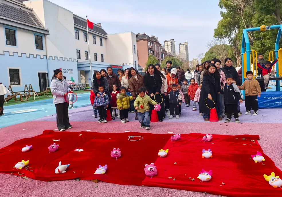 当日上午,家长们带着宝贝有序入园签到,温馨的活动氛围瞬间拉满。活动从有趣的亲子游戏“找妈妈”中正式拉开序幕。接着,户外亲子趣味互动游戏“大风吹”“套圈”“齐心协力”“爱的牵引力”等依次上演,每一个游戏都充满了欢乐与温馨,家长与宝贝们在互动中拉近距离,在协作中感受亲情,操场上满是幸福的身影与欢快的笑声。