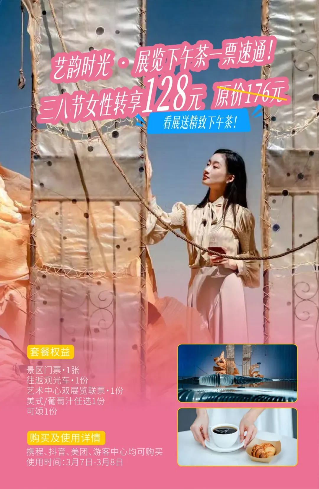 两场正在展出的主题艺术展,一份精致的地东风韵下午茶。窗外是红砖建筑和春天的盎然,窗内是你,和这个下午最奢侈的安静。