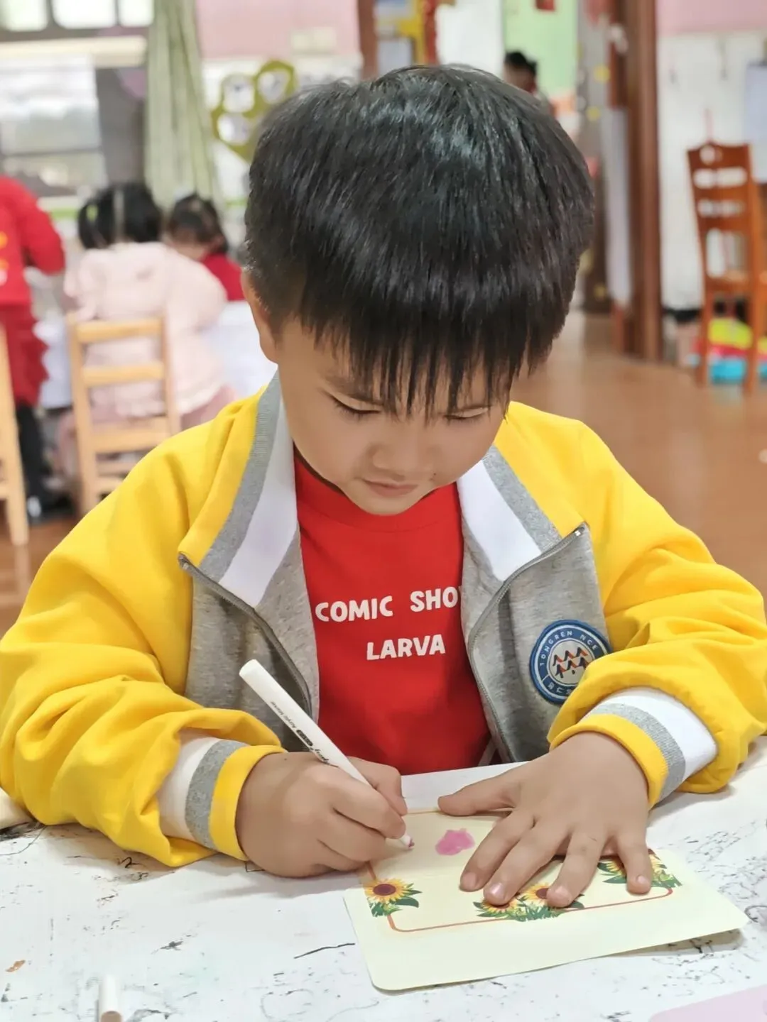 在这个特殊的节日里,孩子们将所有的浪漫、所有的爱都汇聚在这一份份用心制作的、独一无二的礼物中,把爱送给他们心中的“女神”。