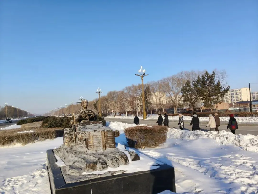 作为北大荒西部最大的农场,咱们查哈阳的乡亲们纷纷走出家门,奔向她们熟悉、喜爱的三马路。这条马路也叫北大荒路或文化路,是同一条宽敞的大道,双向车道,中间有整齐的绿化带,种着矮树花草。在这条路中间的绿化隔离带里,矗立着十座雕塑,静静诉说着北大荒的历史。