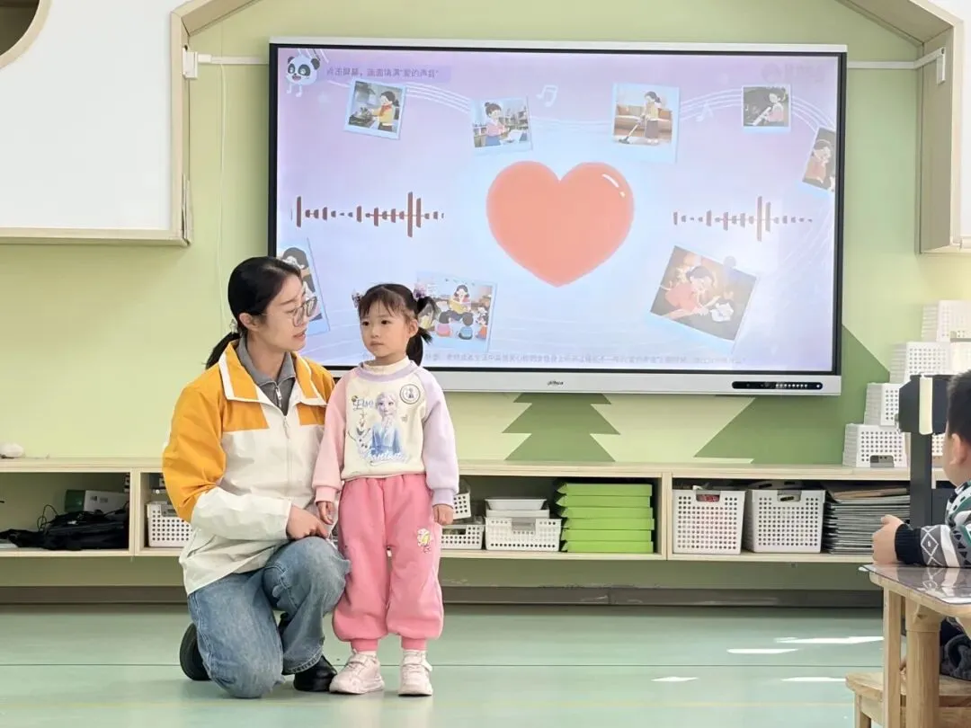 爱,是需要表达的,更是需要聆听的。小一班以“聆听爱的声音”为主题,开启了一场温柔的“告白之旅”。活动中,孩子们睁着清澈的眼眸,在梁老师的引导下学着表达内心的情感:“妈妈,你每天给我做饭,辛苦了!”“奶奶,我最爱你啦!”“老师,谢谢你陪我做游戏”……一句句软糯又真挚的话语,没有华丽的辞藻,却有着直击人心的力量。