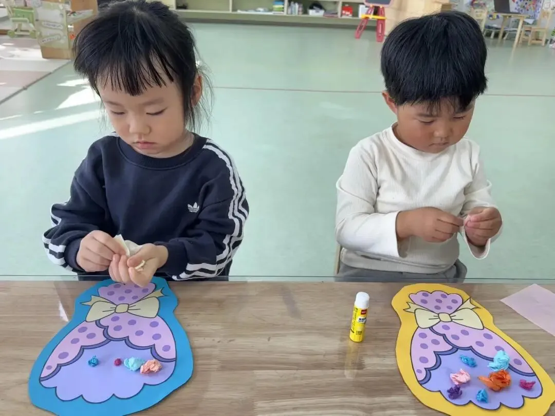 以手造物,以礼寄情。小二班的宝贝们化身“小小花艺师”,开启了一场别开生面的“花束制作之旅”。在老师的耐心指导下,孩子们小心翼翼地拿起彩色的纸揉搓成团,认真地排列、粘贴,每一个步骤都充满了认真与专注。