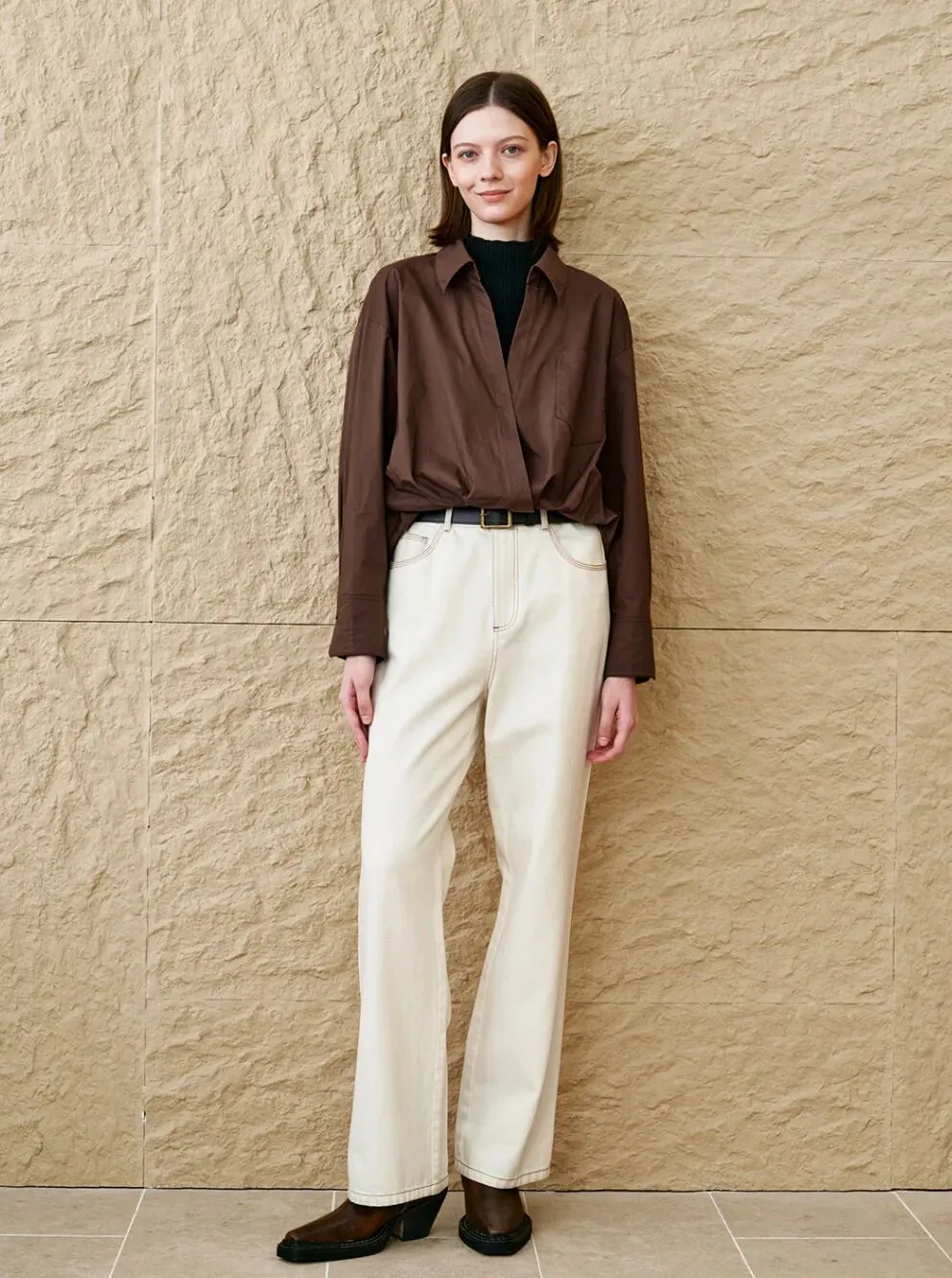简约栗色风衣
