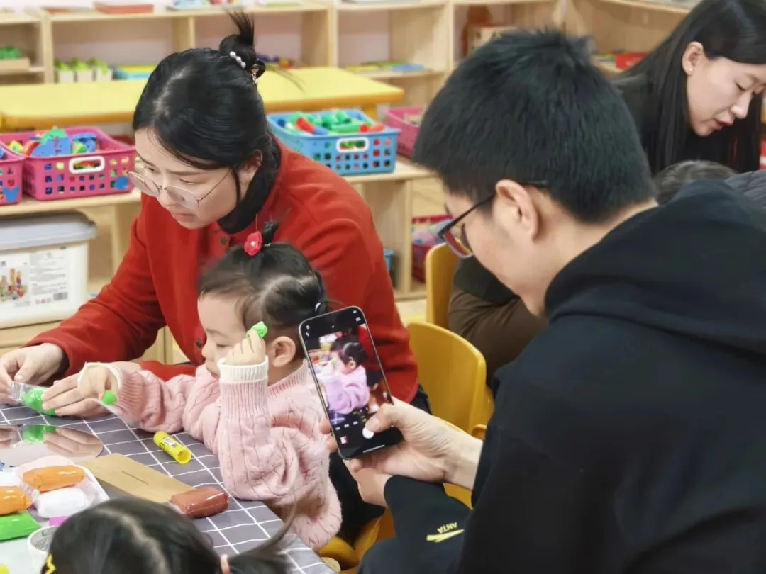 宝贝揉一揉、压一压、贴一贴,家长温柔陪伴、细心协作,每一个动作都充满温情,每一件作品都独一无二。老师耐心示范、轻声指导,温馨的教室里,流淌着陪伴的幸福,绽放着创作的快乐