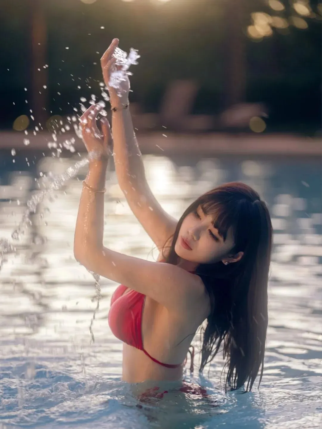 当前位置:首页>美女资讯>池畔红焰|红裙少女的夏日泳池甜辣写真