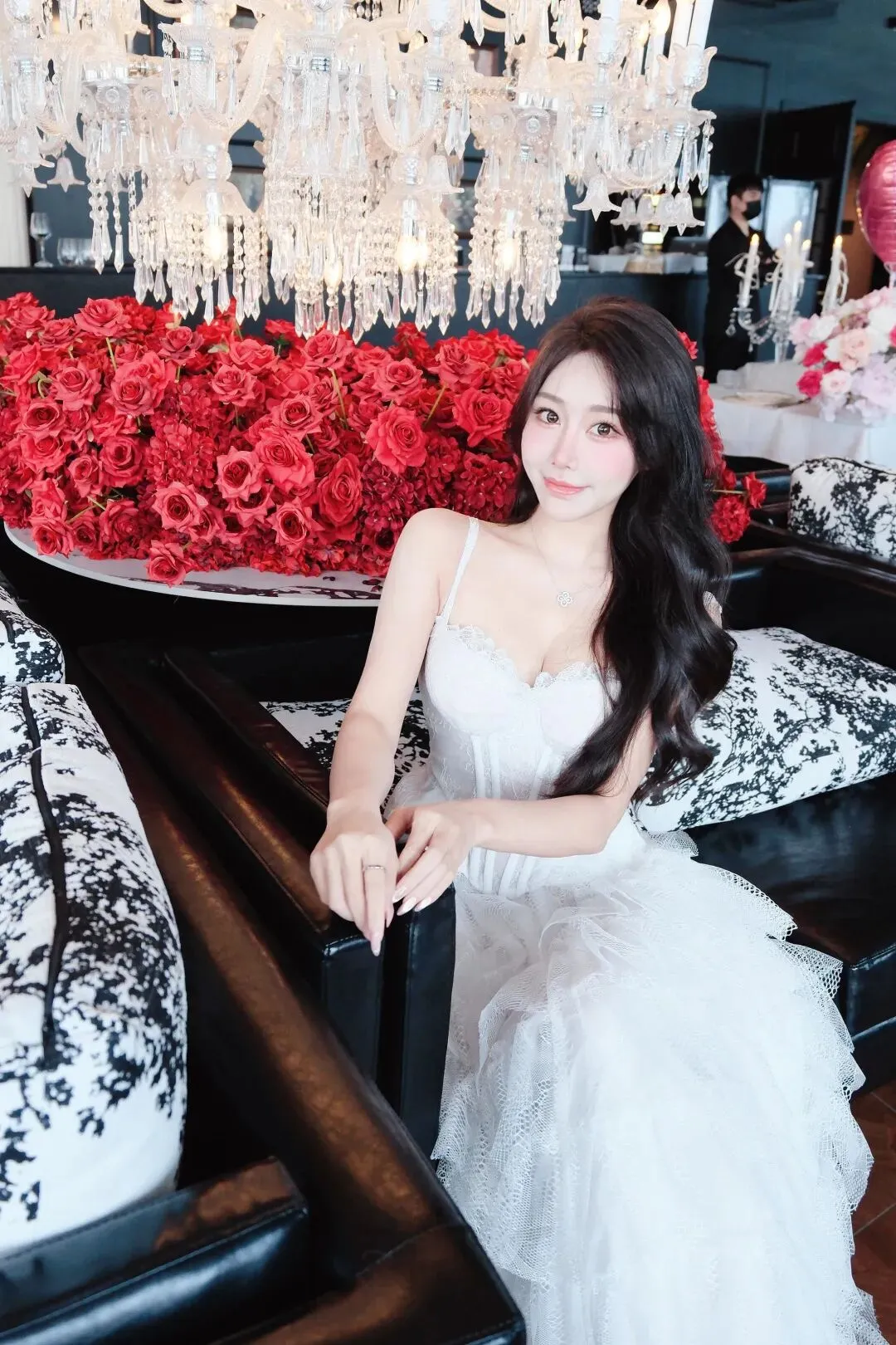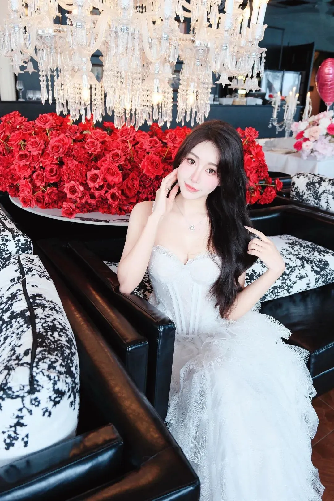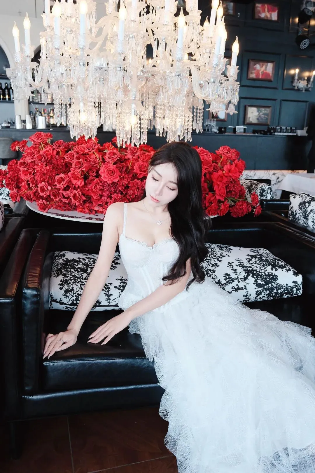 📷白纱蕾丝裙是浪漫的代名词,抹胸设计勾勒出锁骨线条,鱼骨束腰藏起小赘肉,层层叠叠的网纱裙摆像揉碎的月光。搭配细钻项链,在水晶灯与红玫瑰的映衬下,温柔又矜贵,一颦一笑都像在赴一场名为心动的约会。
