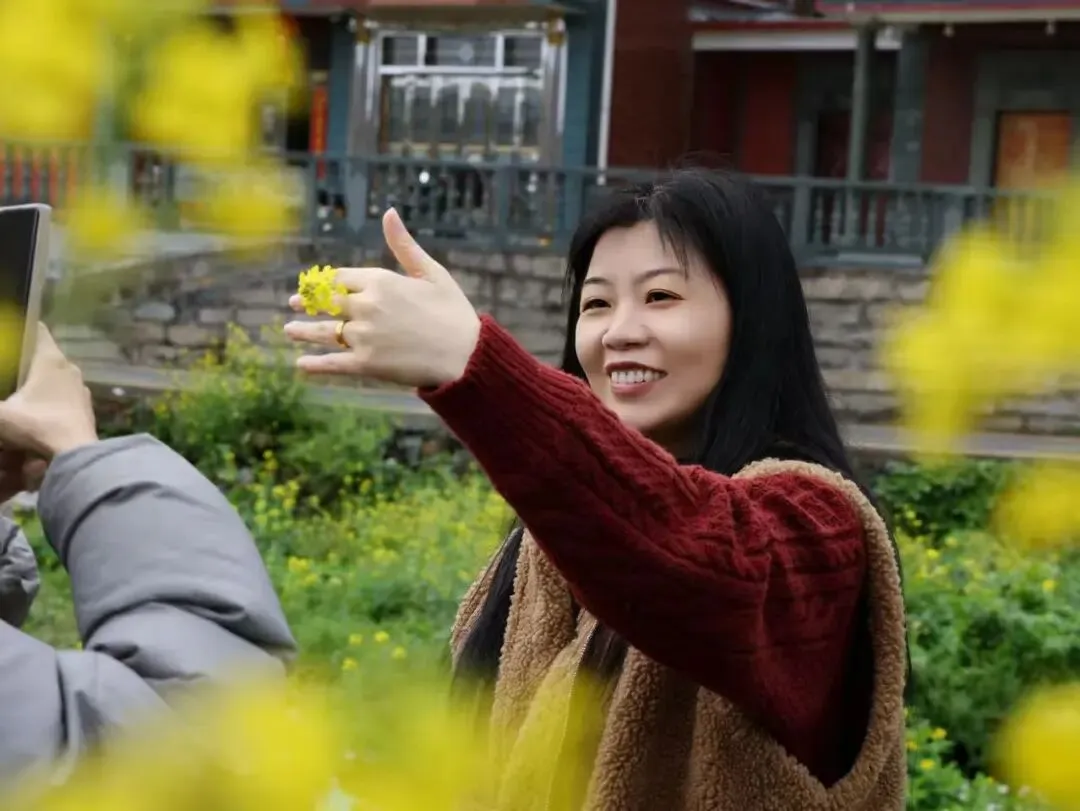 目之所及,皆是金黄。姐妹们穿梭在花田小径,笑靥比春日的阳光还要明媚。这一刻,没有工作的忙碌,只有岁月的静好。