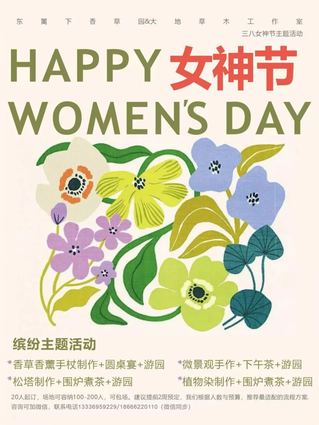3月8日女神节专属主题活动,香草香薰手杖、圆桌宴、微景观手作、下午茶植物染制...为你创造一场独特的感官体验!