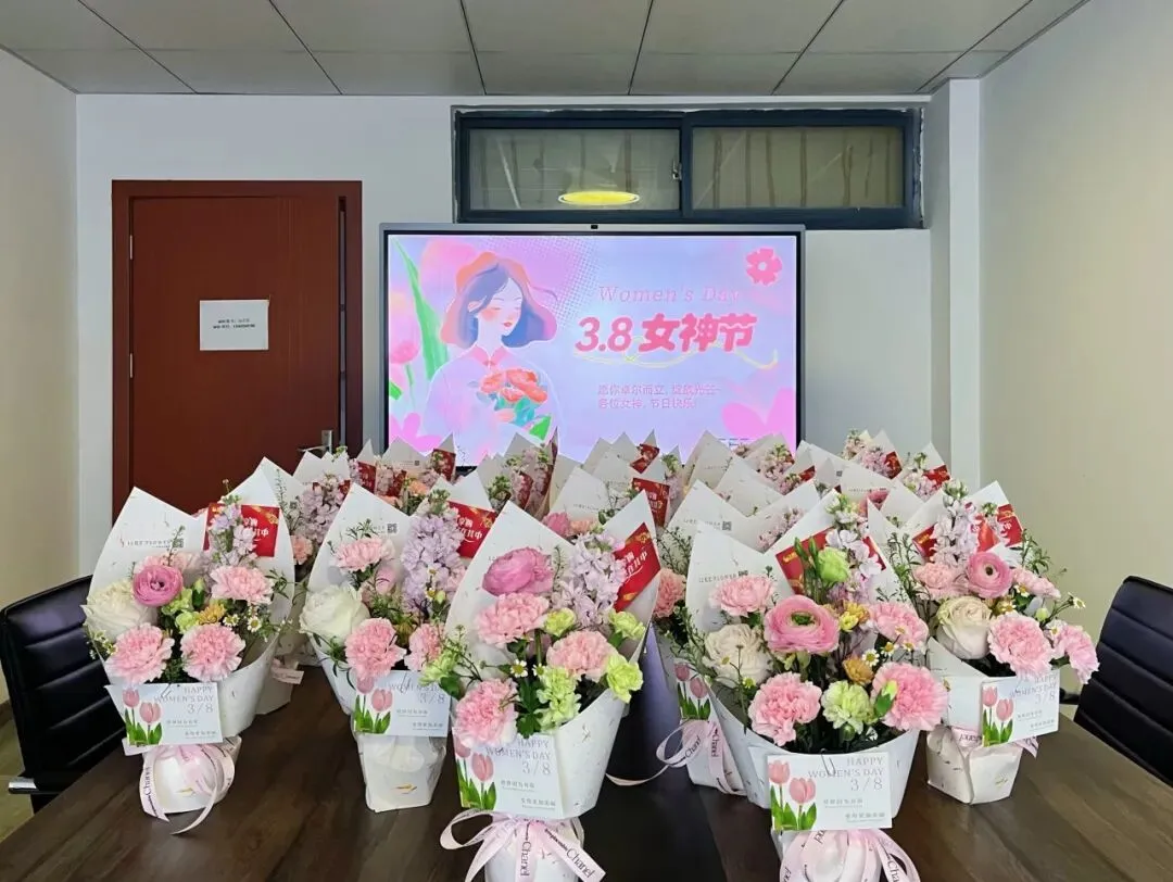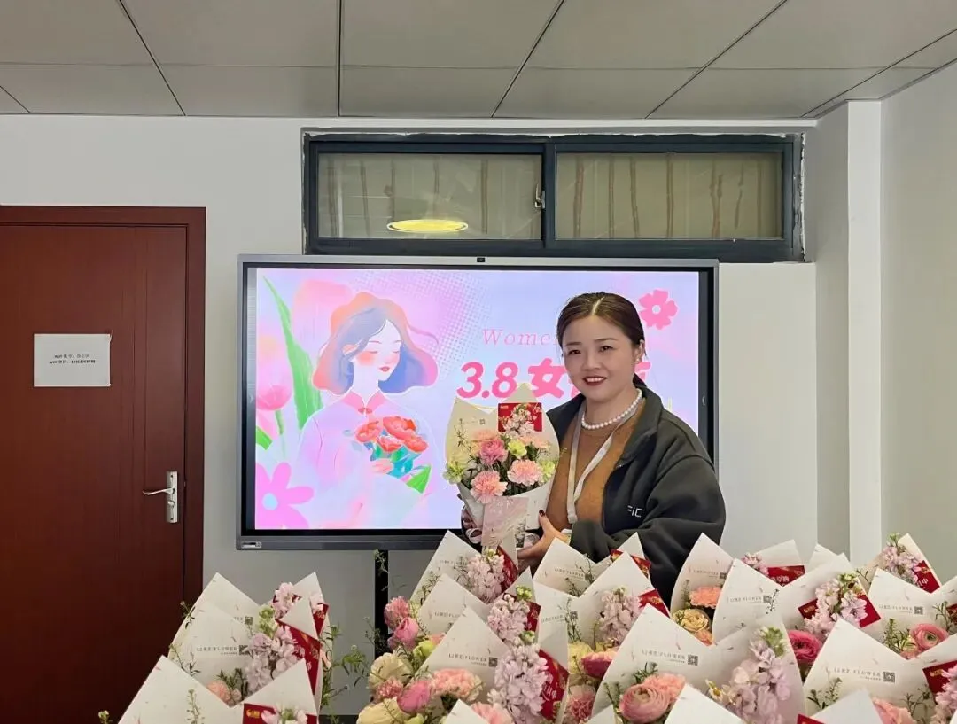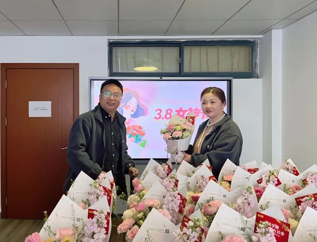 上午,张总代表公司为女同事亲手送上鲜花与节日问候。现场气氛温馨而轻松,接过精心准备的礼物,大家的脸上都洋溢着欣喜与笑意。     “公司的每个节日礼物都很给力!”大家一边笑着,一边忍不住为这份贴心的仪式感点赞。