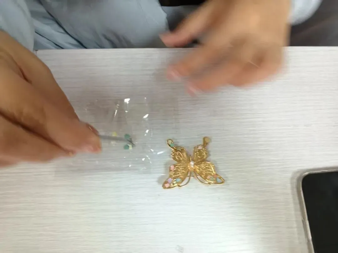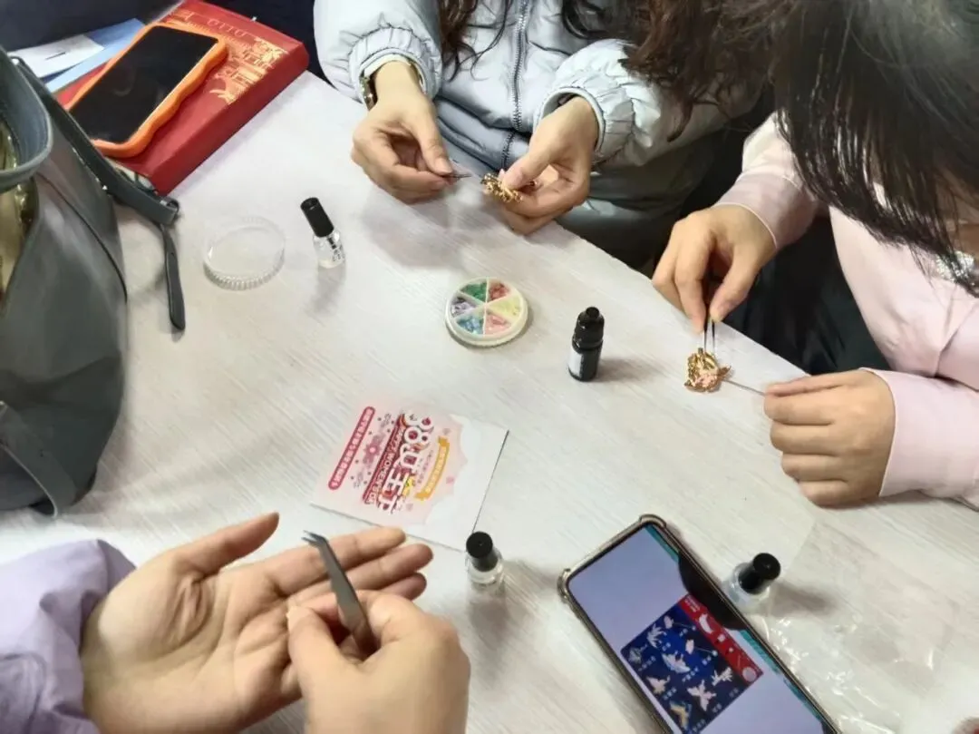 活动快结束时,有人把做好的胸针别在衣领上,轻轻转过头,问身边的人:“好看吗?”