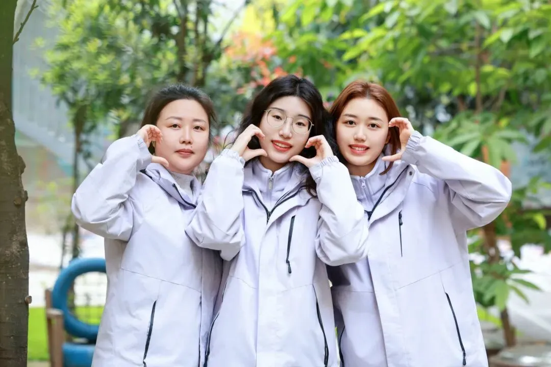 这一群人,平时在各自的教室里发光,今天终于站在一起,把春天框进同一张照片里。