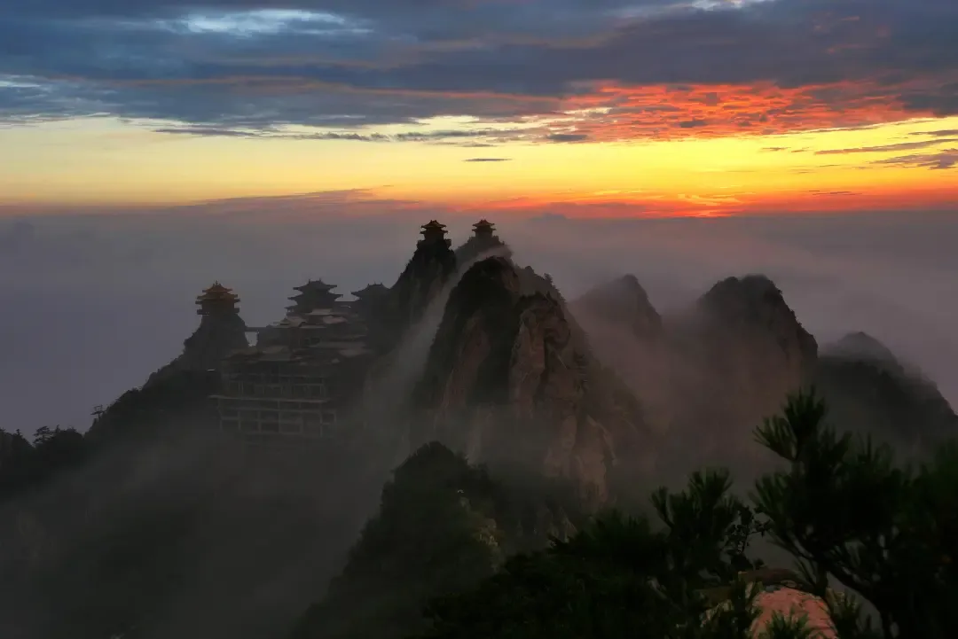 云海在老君山上演绎着一场奇幻的舞蹈。云雾轻盈地飘动,时而像细雨般轻柔地飘洒,时而像浓雾般翻滚腾跃。云海与山峰交相辉映,形成了一幅独特的山水画卷。在这里,你可以感受到大自然的鬼斧神工,仿佛置身于一个神秘的仙境。