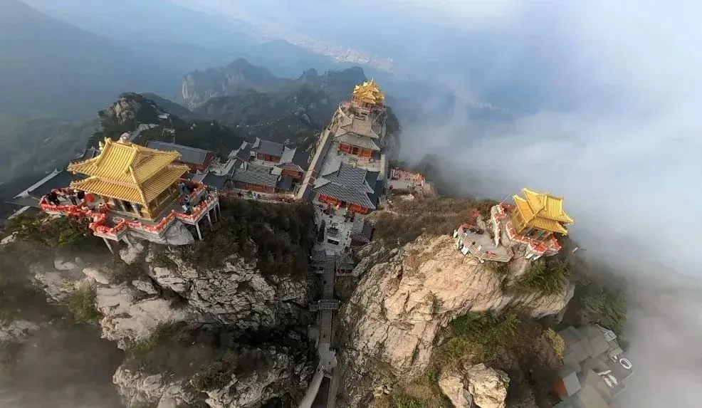 唐太宗时期,由大臣尉迟敬德监修老君庙,山巅修建老君庙,铁椽铁瓦,以"铁顶"著称,灵官殿、淋醋殿、道德府等庙宇古朴凝重,香火炽盛。