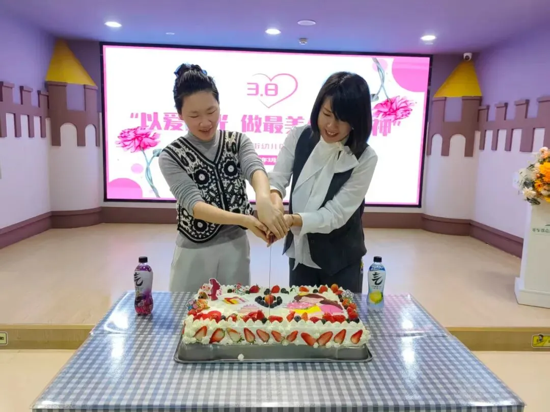切蛋糕仪式将温馨氛围推向高潮,香甜的蛋糕承载着美好期许,老师们共同分享甜蜜,定格温暖瞬间。