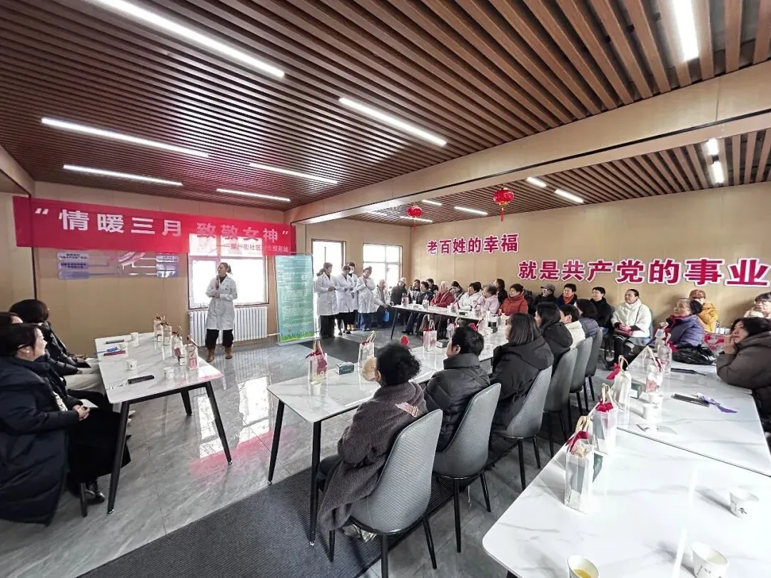 泉州街社区卫生服务站【幸福家园 暖心医疗】,联合泉州街社区【暖心食堂】共同开展“情暖三月 致敬女神”主题沙龙活动将专业医疗服务、暖心节日祝福与暖心医疗惠民政策宣讲融合,为辖区女神们送上一站式便民、惠民服务。                                                                  本次活动以暖心医疗与暖心食堂为阵地,既将优质暖心医疗资源下沉至居民家门口,又依托活动场景开展暖心医疗惠民政策精准宣传,让居民在享受健康服务,欢度节日的同时,零距离了解最新民生福祉,实现“健康关怀 + 政策惠民”双收获。                                          春寒未消,但活动现场的暖意早已拉满。辖区女性居民闻讯而来,踊跃参与,大家有序排队、亲切交流,脸上洋溢着幸福与喜悦,一场专属女性的暖心盛宴就此开启。