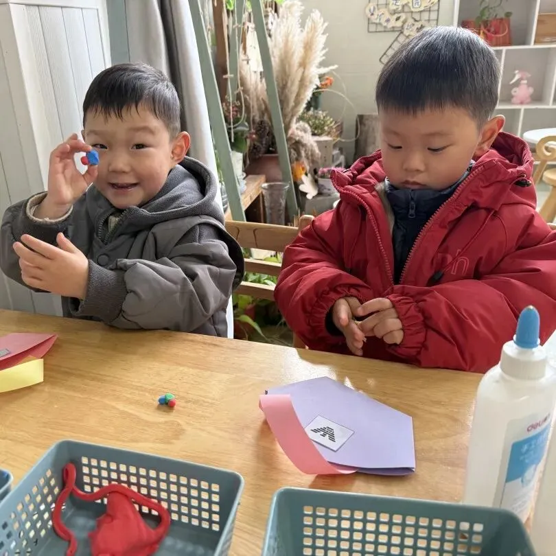 孩子们拿起画笔,在卡纸上画出自己喜欢的图案,设计出独一无二的花瓶;再用色彩鲜艳的油泥,揉、搓、捏出一朵朵可爱的小花,小心翼翼地“插”进瓶中。每一件作品都充满了童真与爱意,承载着宝贝们对家中女神最真挚的祝福。