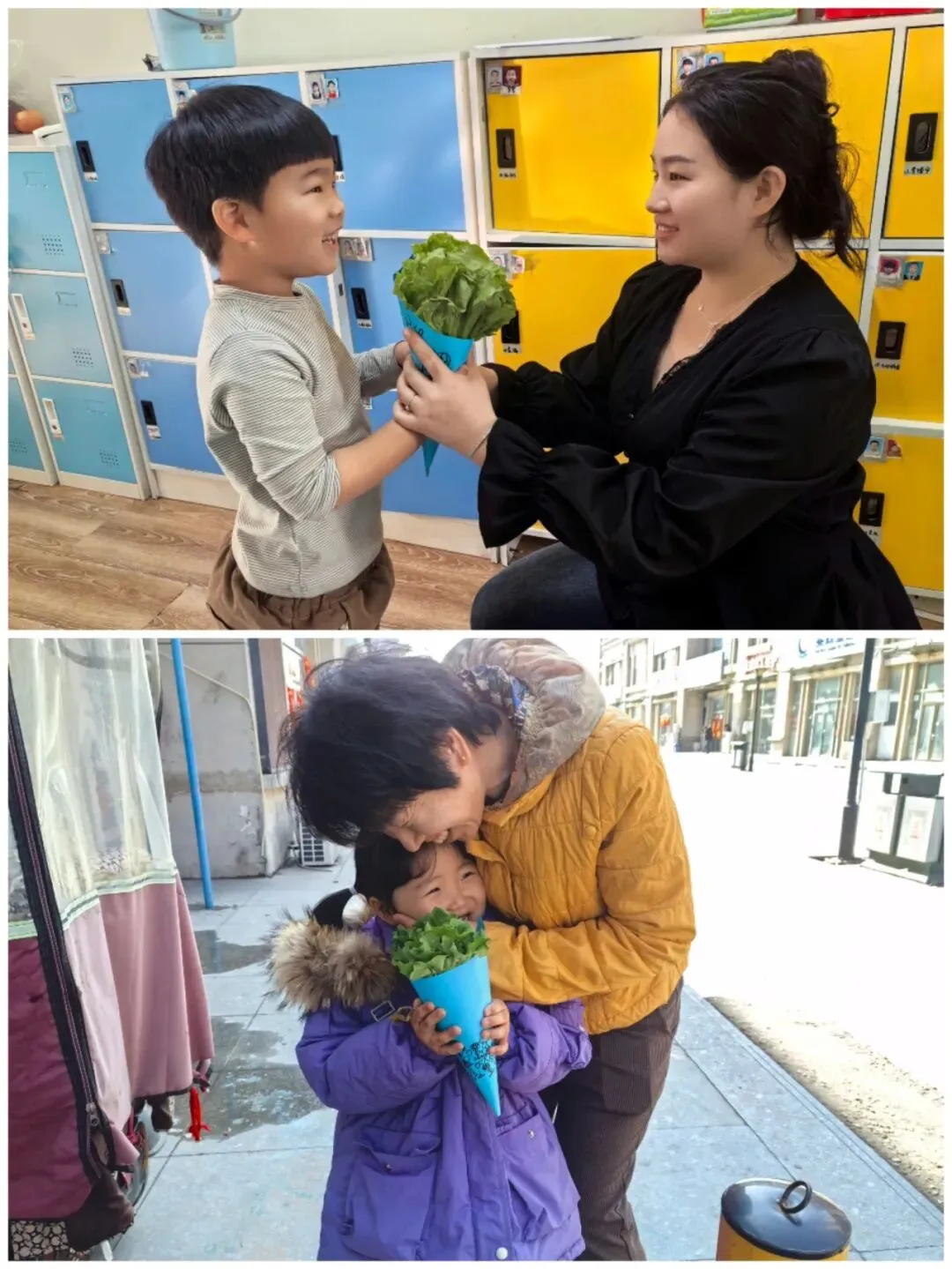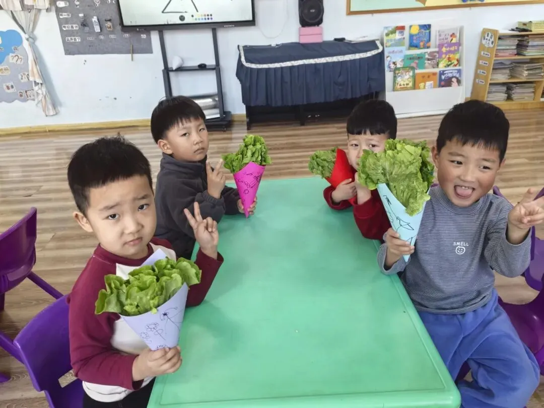 中一班的小朋友制作独一无二的生菜花束