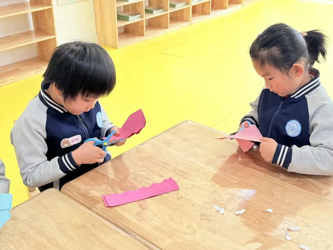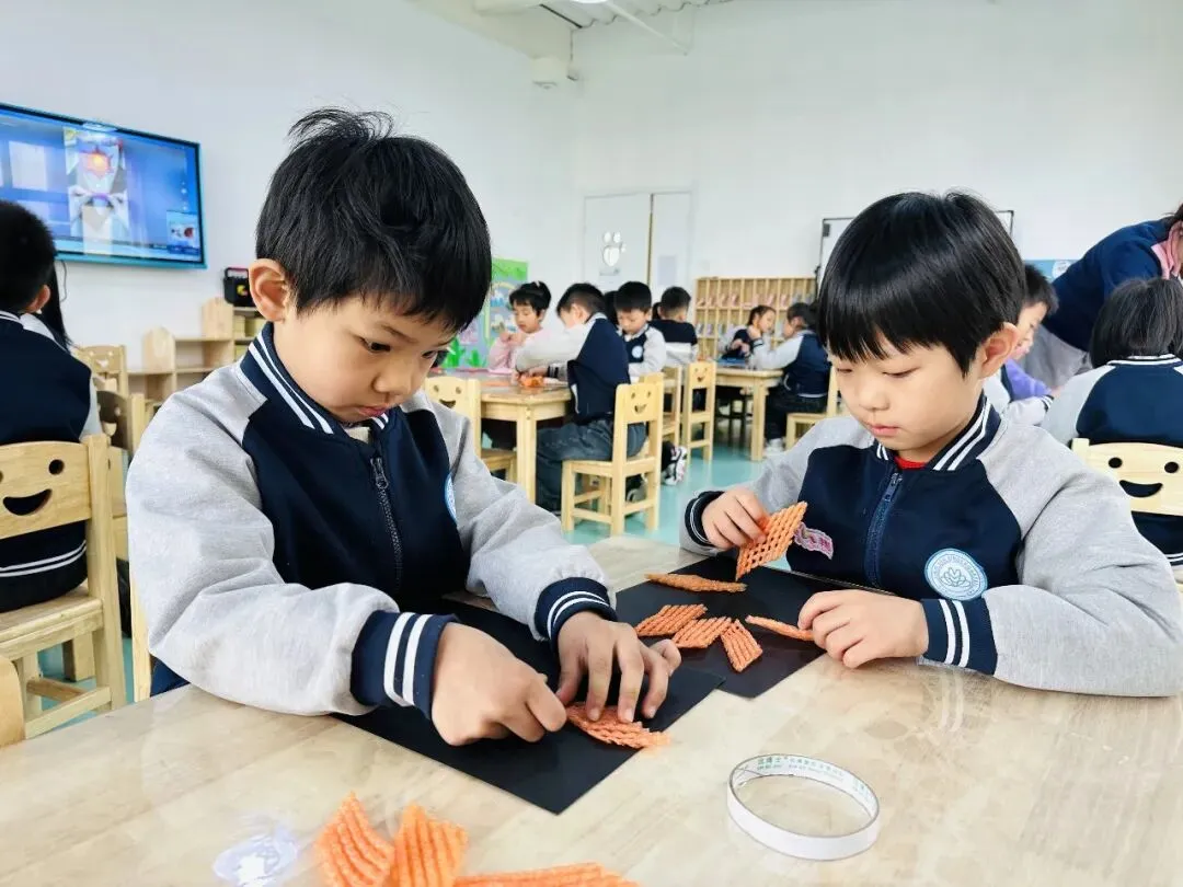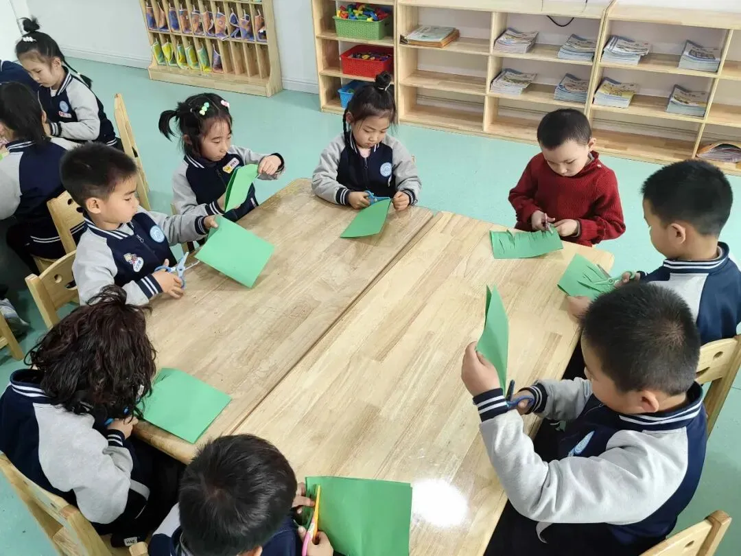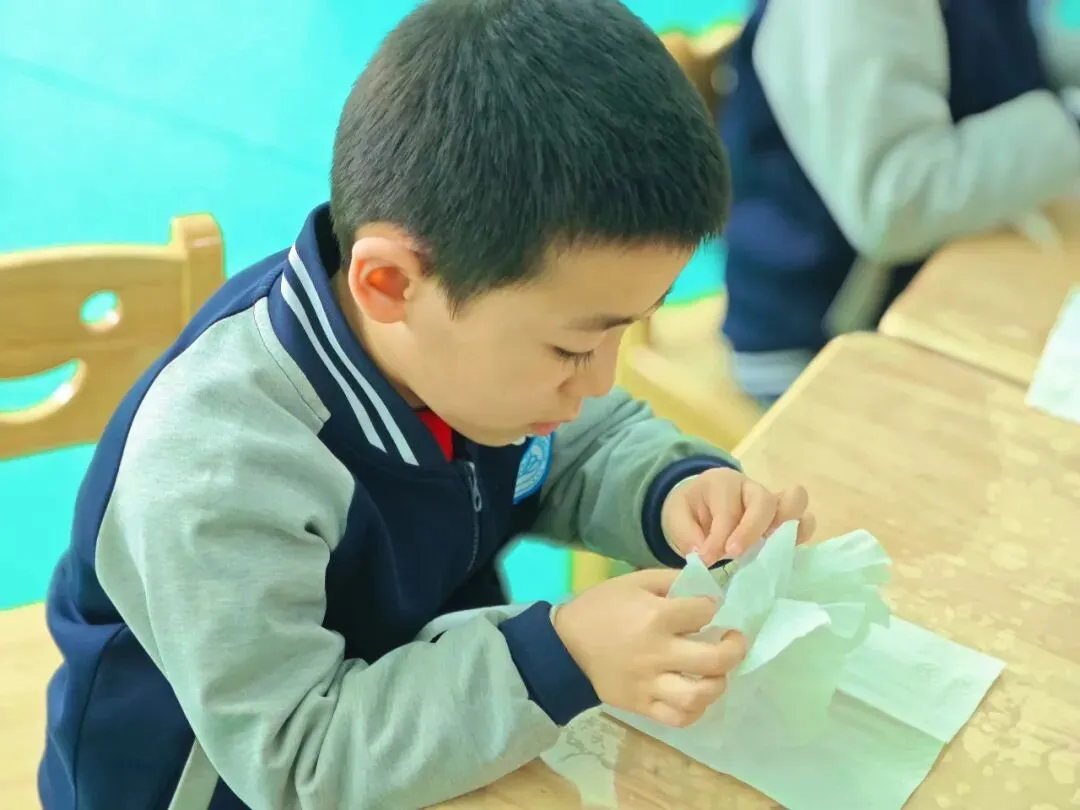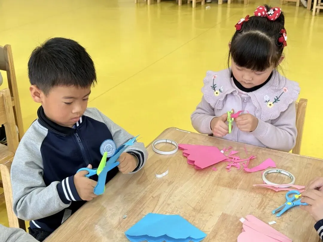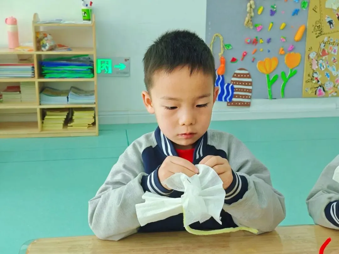 孩子们专注制作“时尚包包”,彩纸折叠、贴纸装饰,一个个小巧玲珑的手提包新鲜“出炉”。
