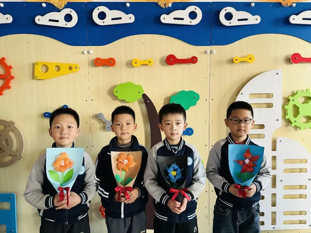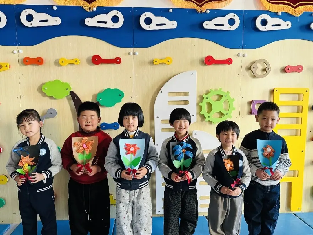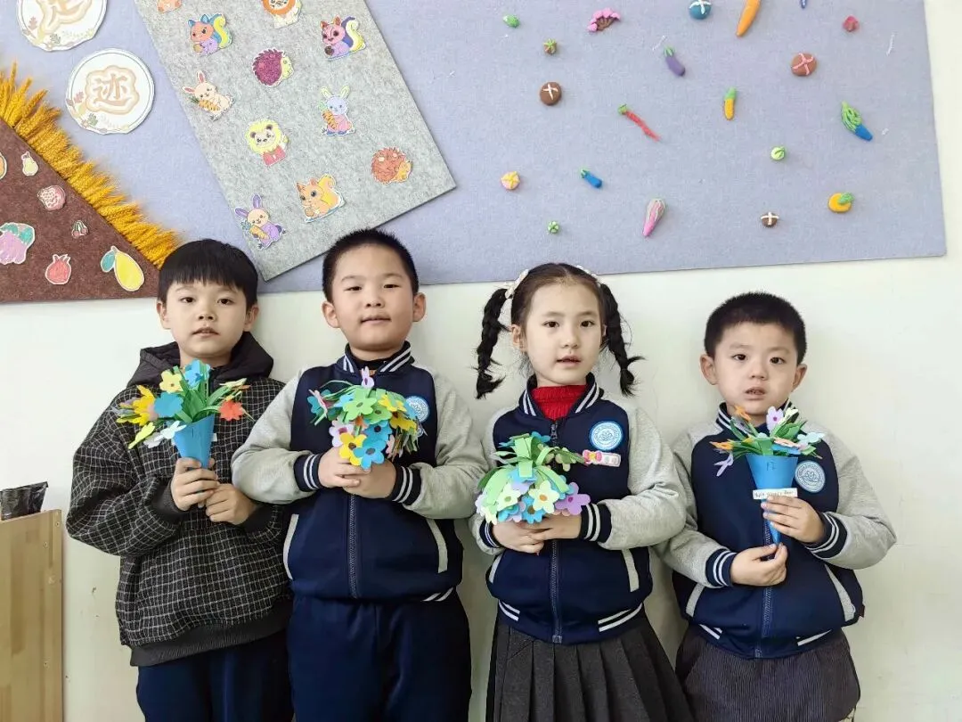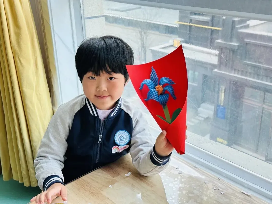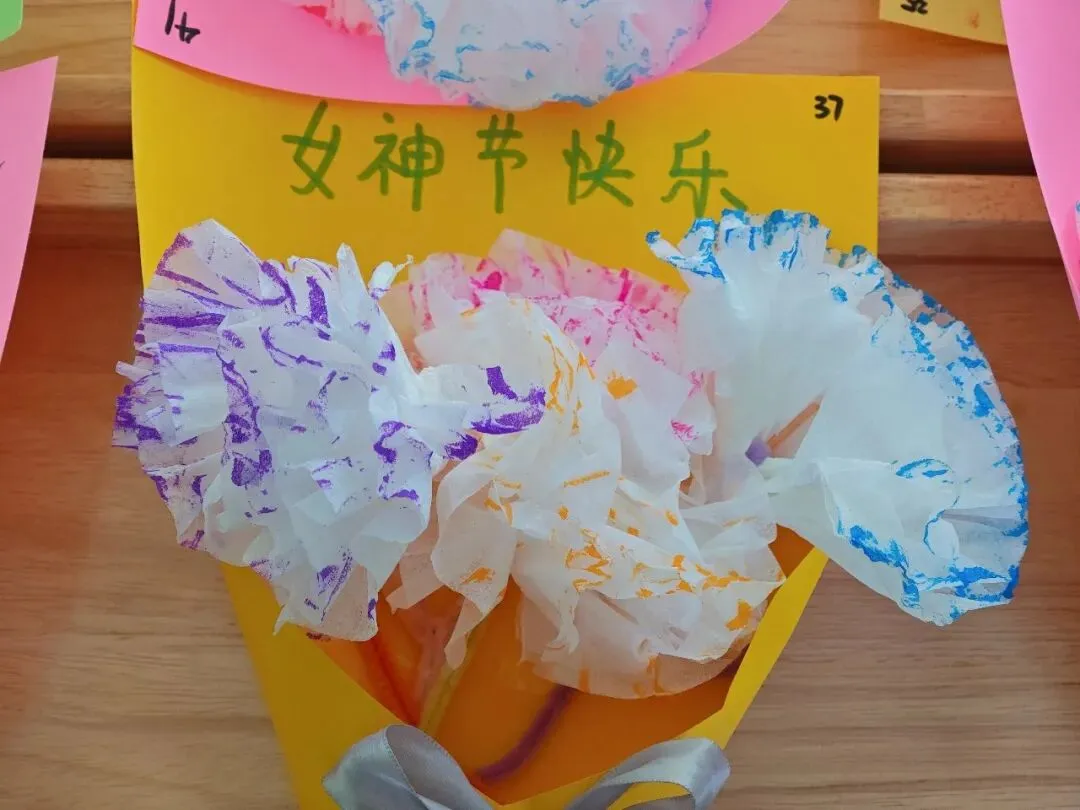 有的孩子还为家中的亲人做了好看的花,祝愿妈妈、奶奶、外婆等节日快乐!