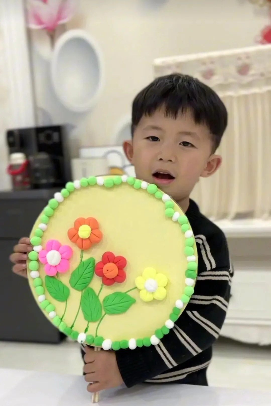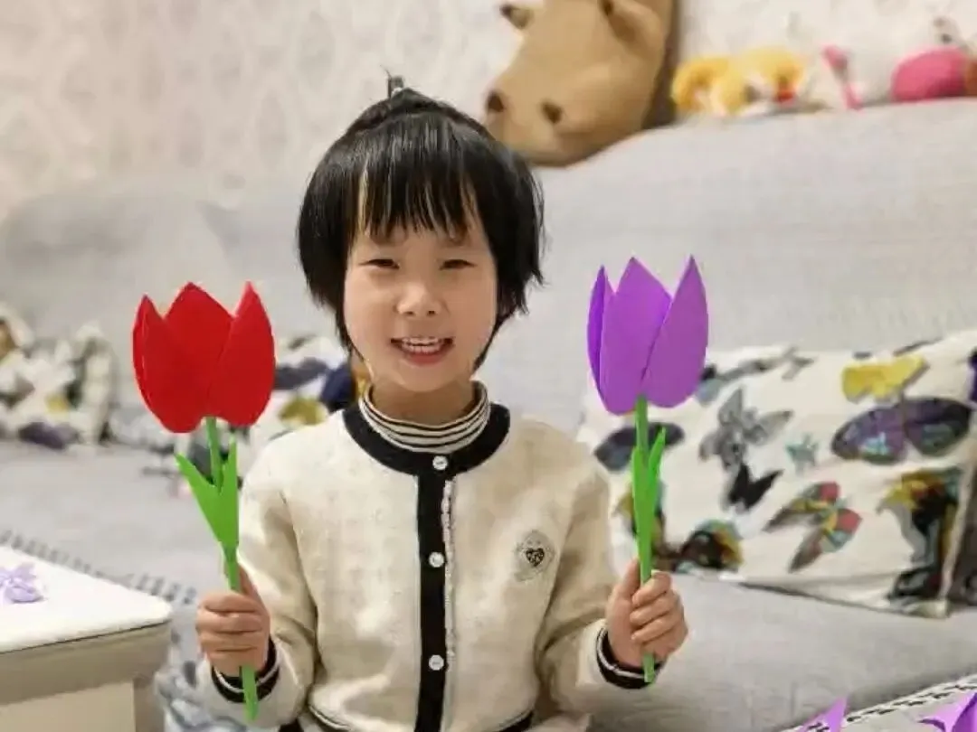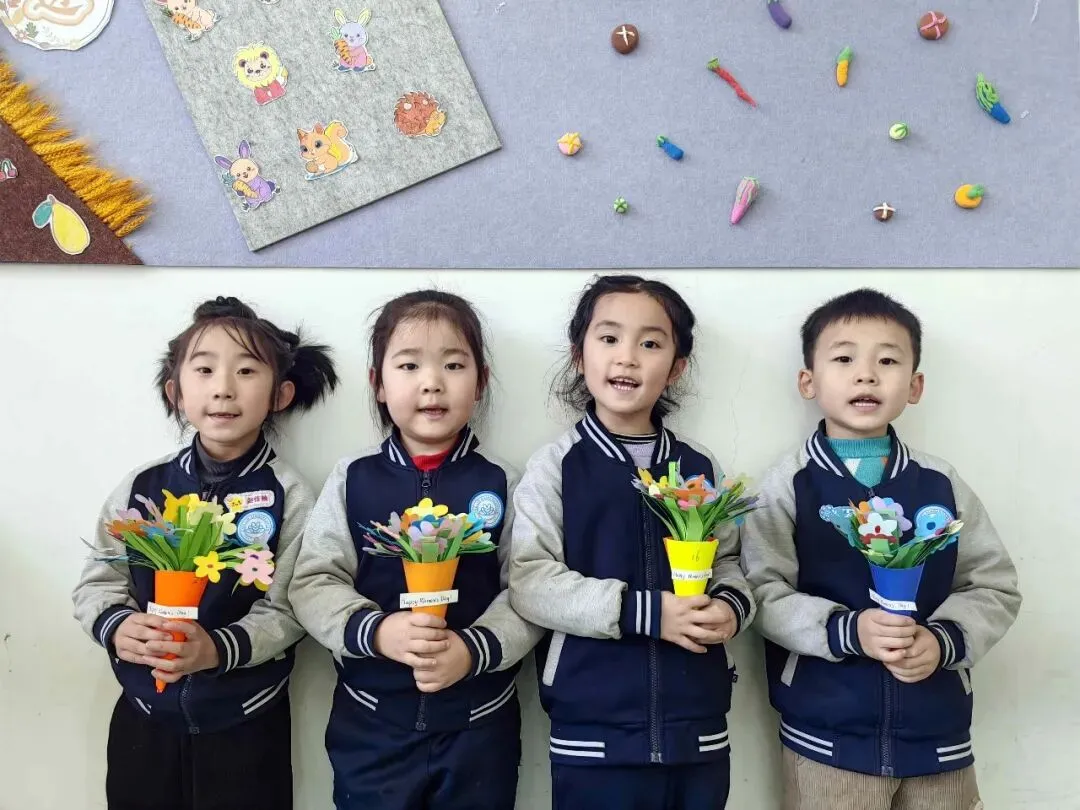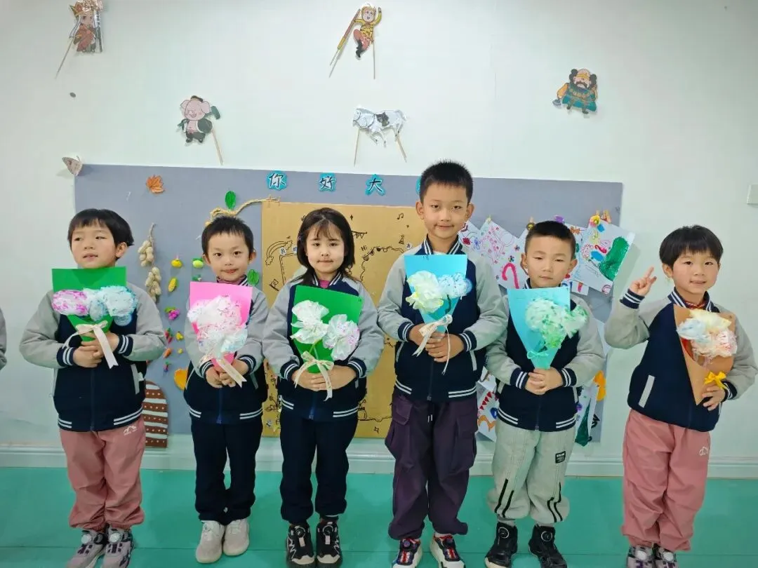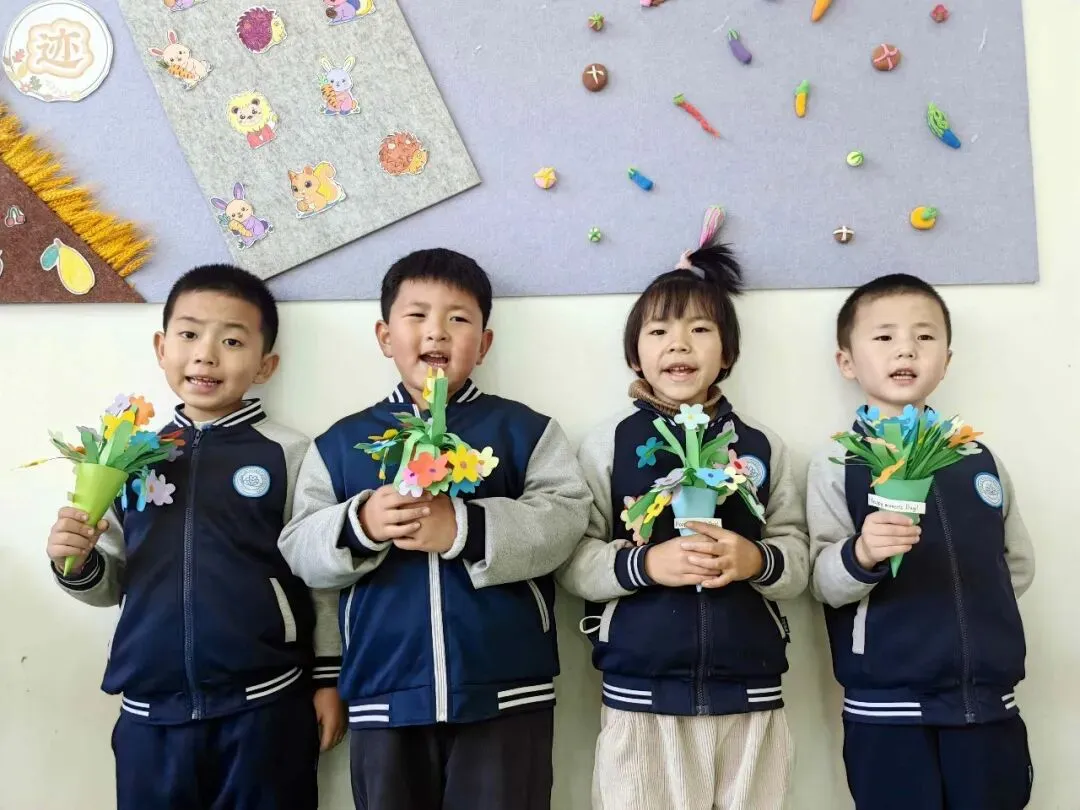 有的孩子还为家中的亲人做了好看的花,祝愿妈妈、奶奶、外婆等节日快乐!