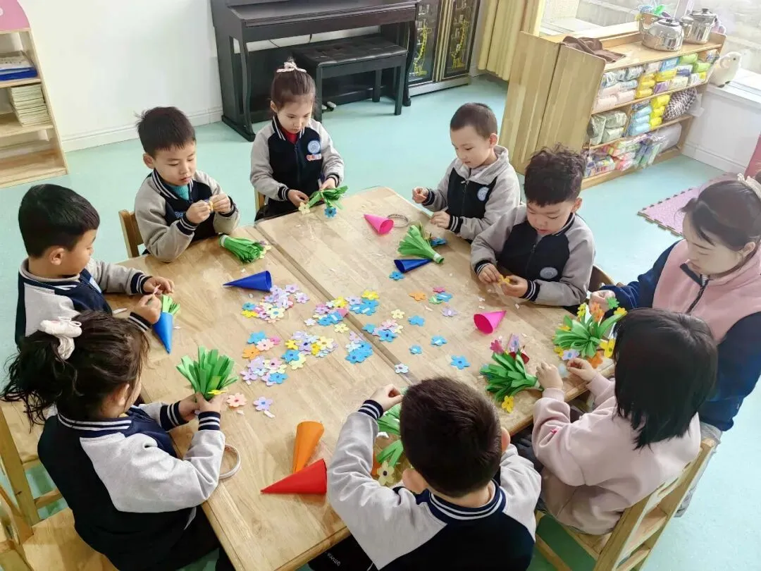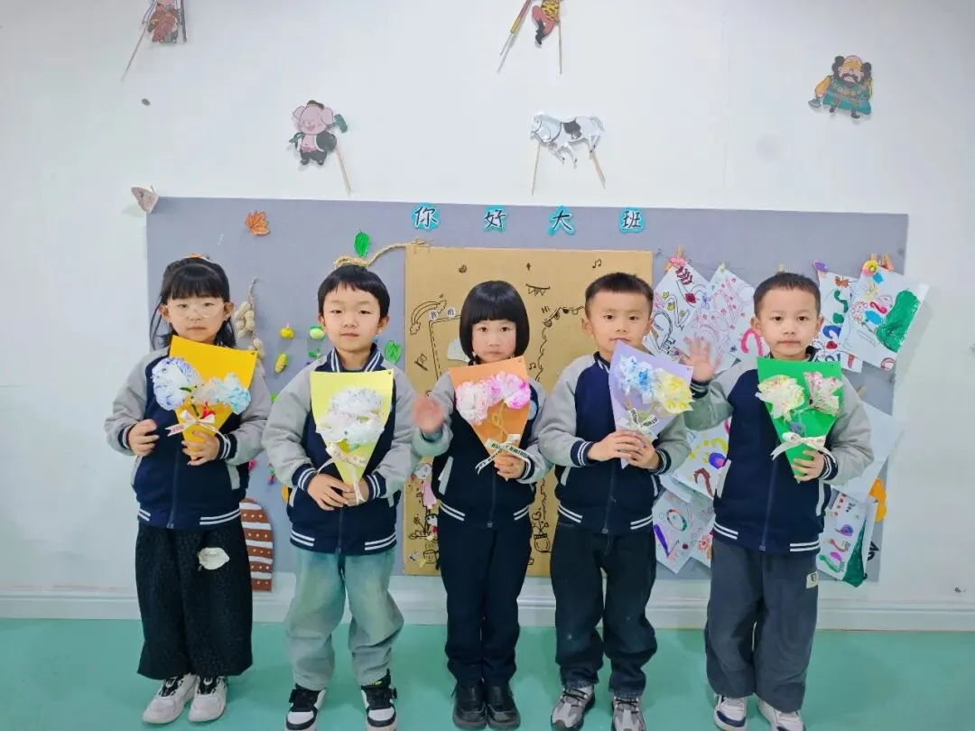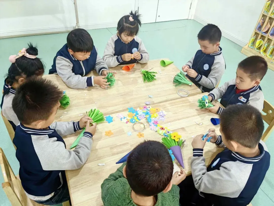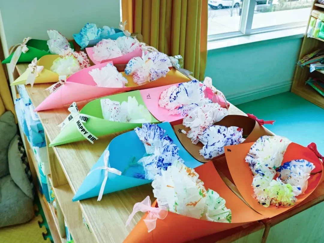 爱是成长路上最无私的奉献,孩子们接受了她太多的关爱,现在宝贝们用灵巧的小手,制作出她最喜欢的花束,小小的花承载着大大的心意,希望宝贝们爱的她,永远笑靥如花。
