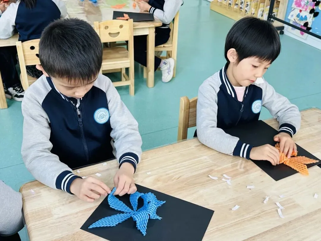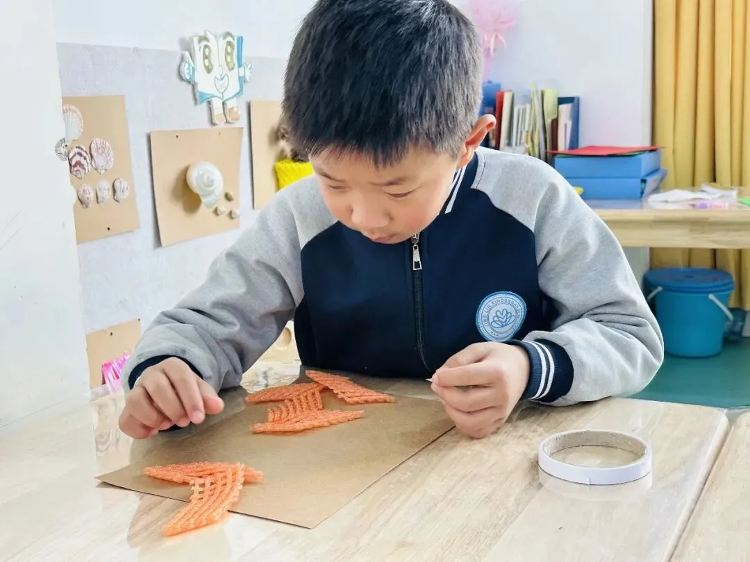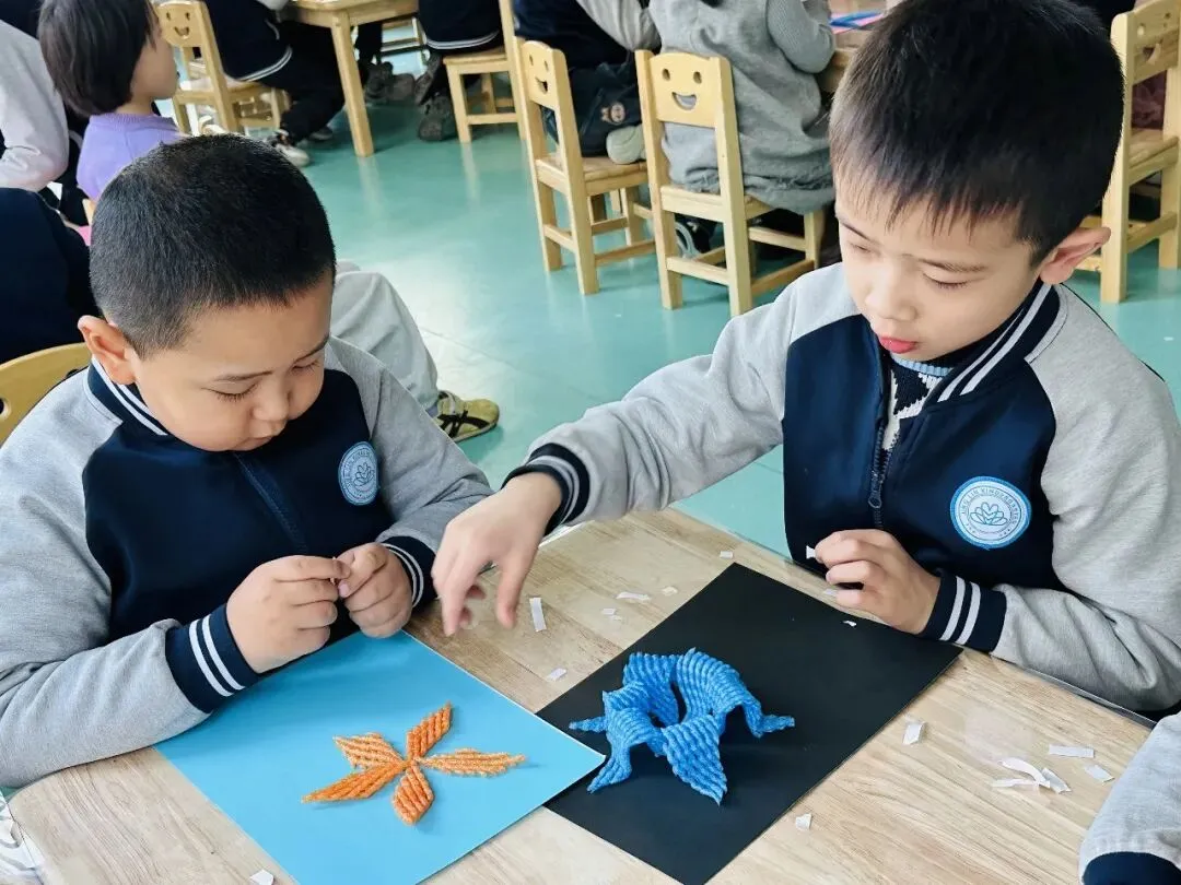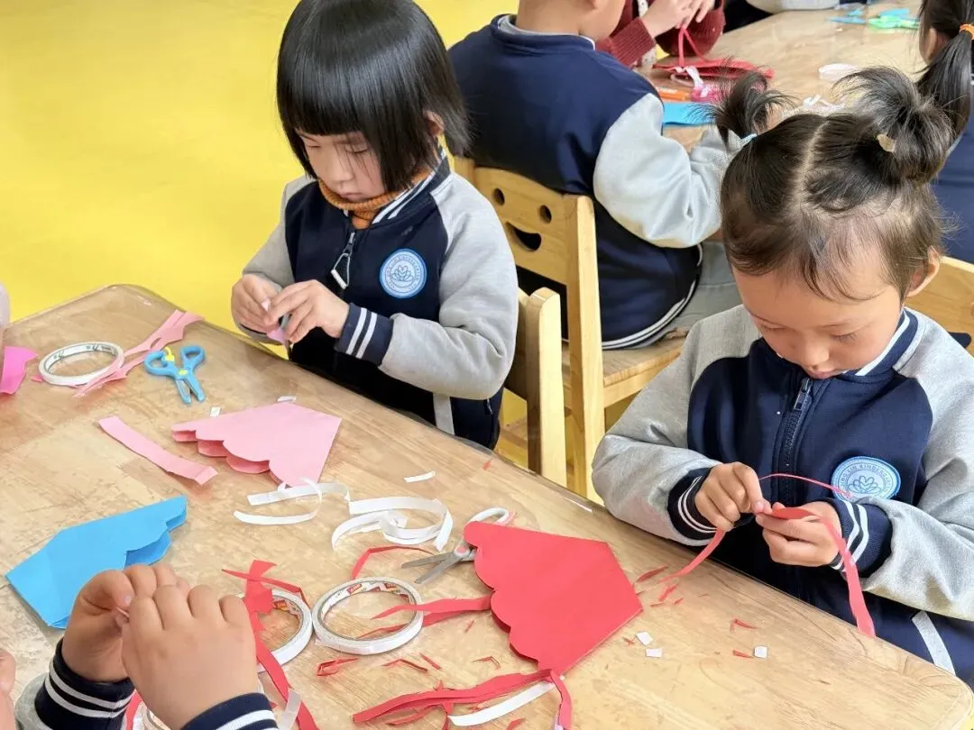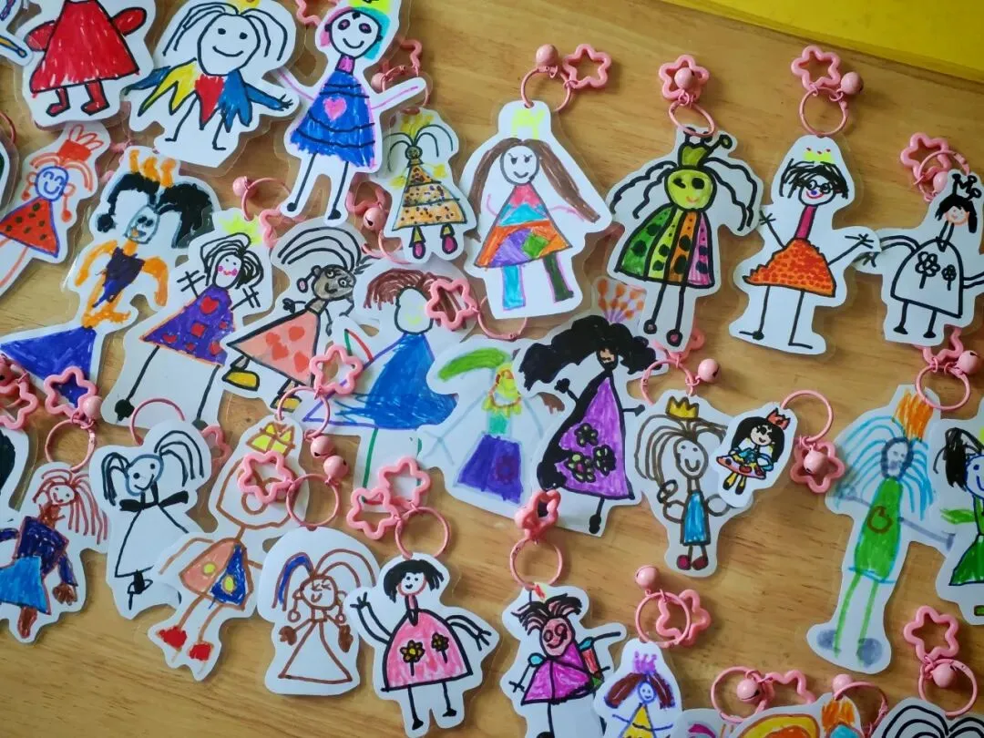 孩子们专注制作钥匙扣,小小的挂件里藏着大大的心意,每一个钥匙扣都凝聚着孩子们的用心。