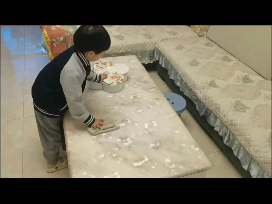 孩子们在家中主动承担起了洗碗、扫地的家务,为妈妈、奶奶细心按摩、温柔洗脚……他们尽自己所能,用小小的身躯做着力所能及的事情。