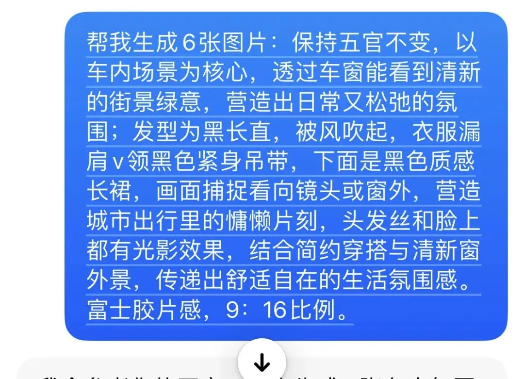 作为一个超爱记录生活却又怕麻烦的人,我一直想拍一组车内氛围感写真,不用刻意摆姿势,主打一个日常松弛感,但找摄影师拍不仅贵,还总放不开,拍出来的效果也不是我想要的感觉。直到我试着把自己的想法整理成文字,发给豆包,没想到直接收获了一组封神大片,每一张都长在我的心巴上!