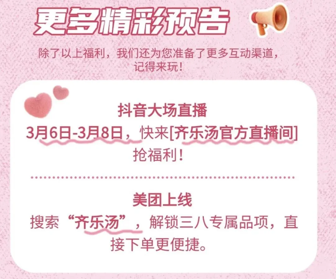 女神节限定宠爱|齐乐汤三重福利,承包你的春日治愈时光!