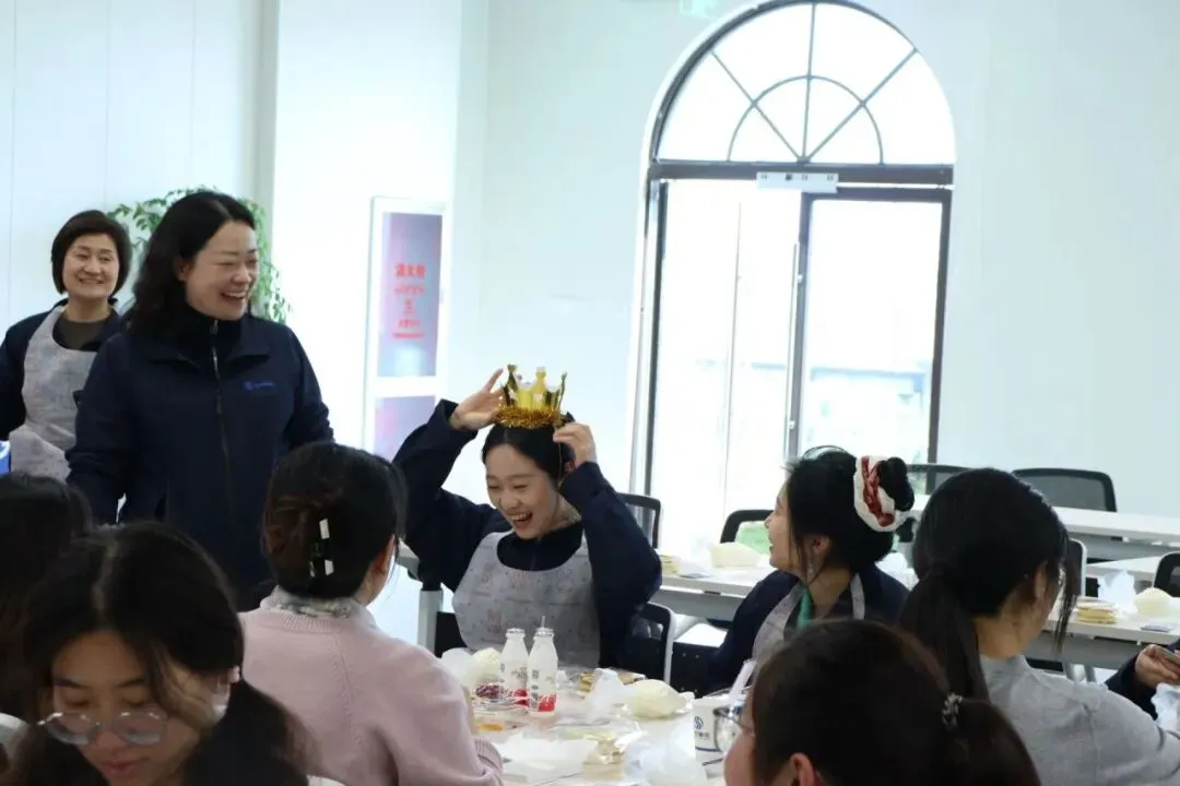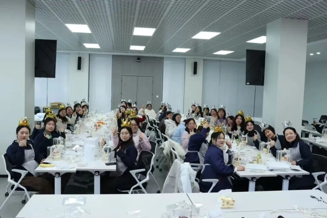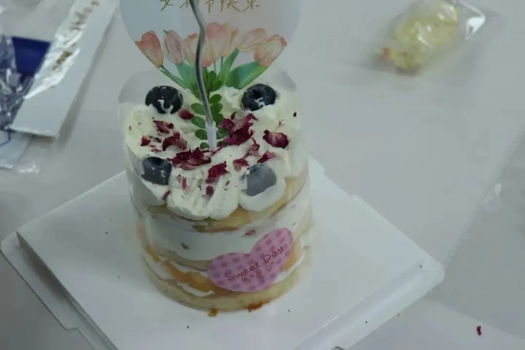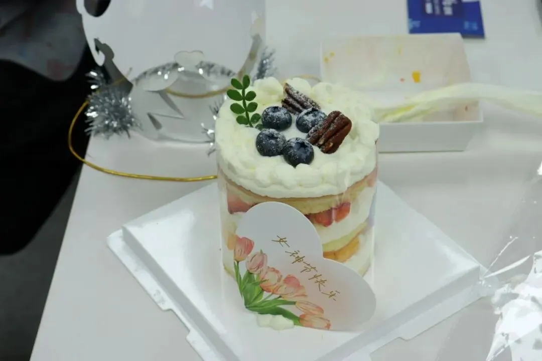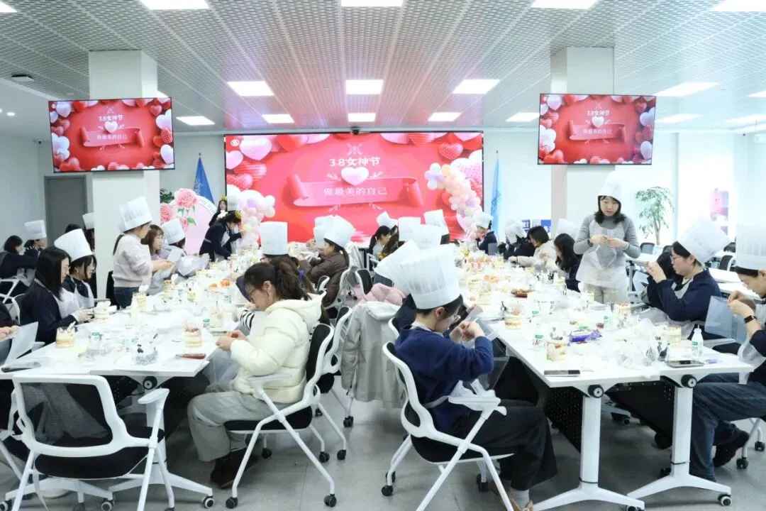 空气中弥漫着奶油和水果的香甜。在专业烘焙师现场教学中,我们的女神们,把工作中的严谨和专注带到了这里——有的认真研究奶油涂抹的角度,力求平整光滑;有的发挥创意,用水果摆出各种造型;还有的同事互相协作,你挤奶油我撒糖粉,配合默契,欢声笑语不断。