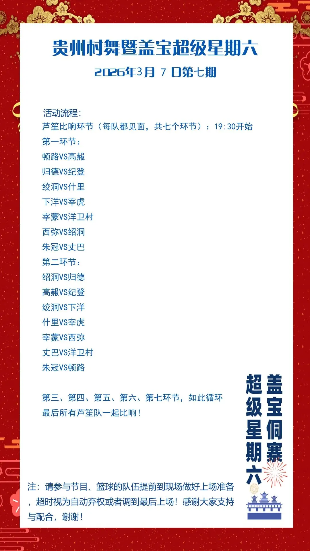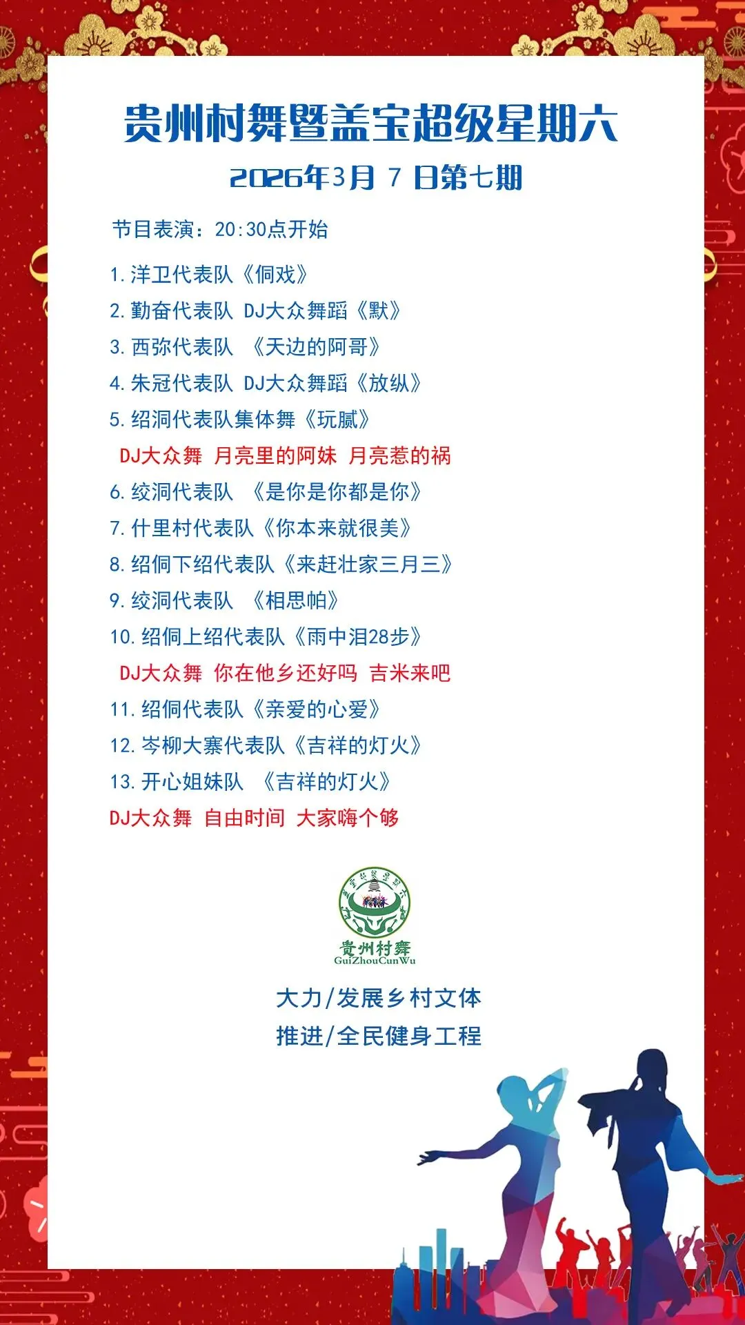 节目单|贵州村舞暨盖宝超级星期六 盖宝侗寨“三八”妇女节芦笙交流会2026年3月7日
