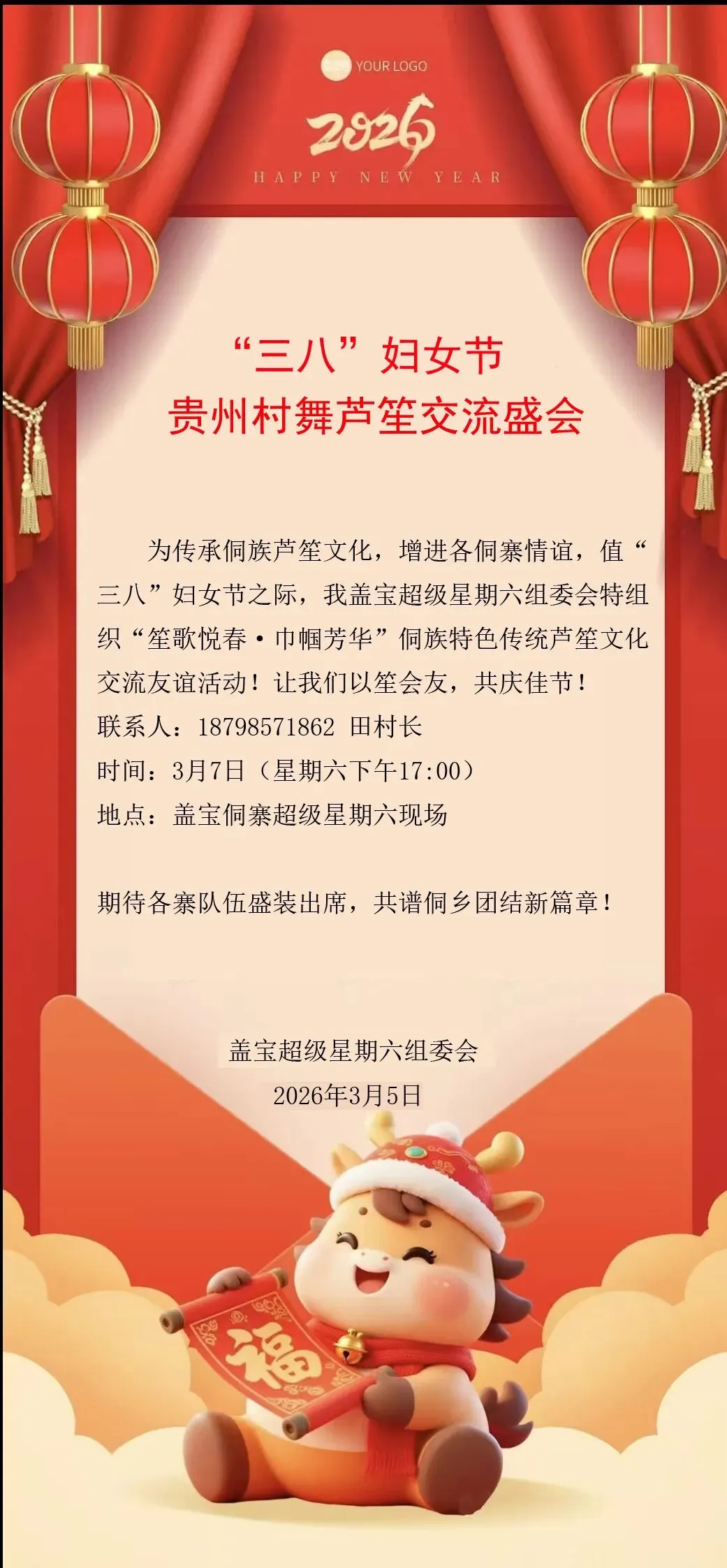 当前位置:首页>美女资讯>节目单|贵州村舞暨盖宝超级星期六 盖宝侗寨“三八”妇女节芦笙交流会2026年3月7日