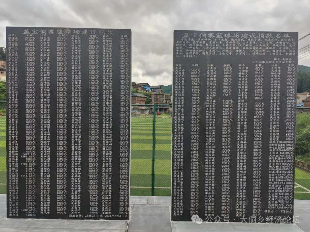 从2023年8月22日到2024年6月不到一年时间,在社会各界爱心人士资助下,贵州省黎平县尚重镇盖宝侗寨的父老乡亲筹集资金和物资40余万,在洋卫村标准11人制足球场北边修建了三个“村BA”标准篮球场。盖宝侗寨目前有六个标准篮球场和一个标准11人制足球场,具备开展各项群众性文体活动,助力乡村振兴的惠民文体场所。