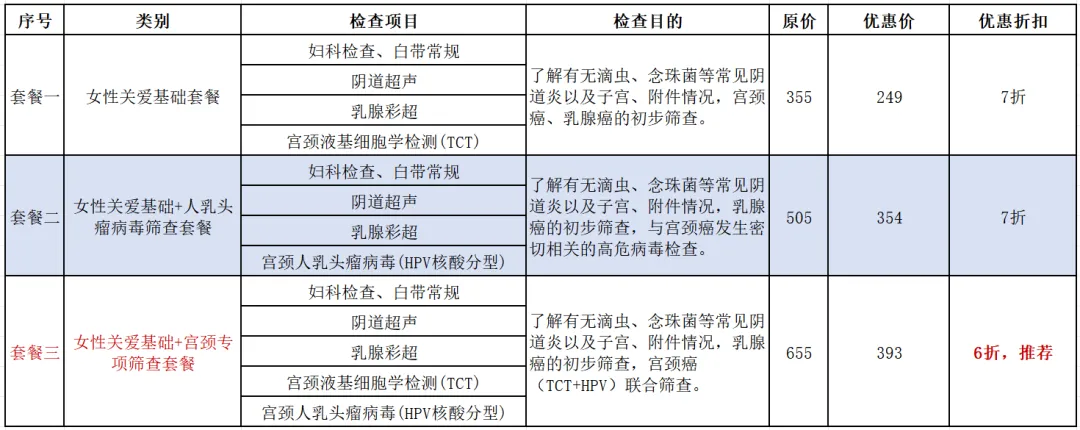 2.女性专属健康体检套餐(多款可选)