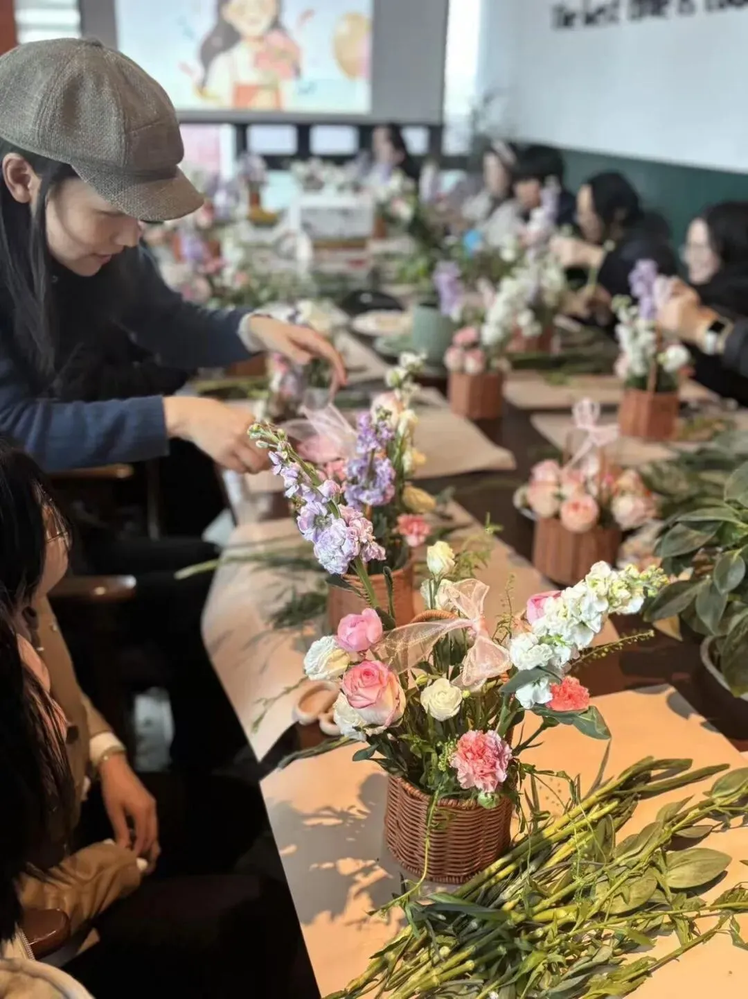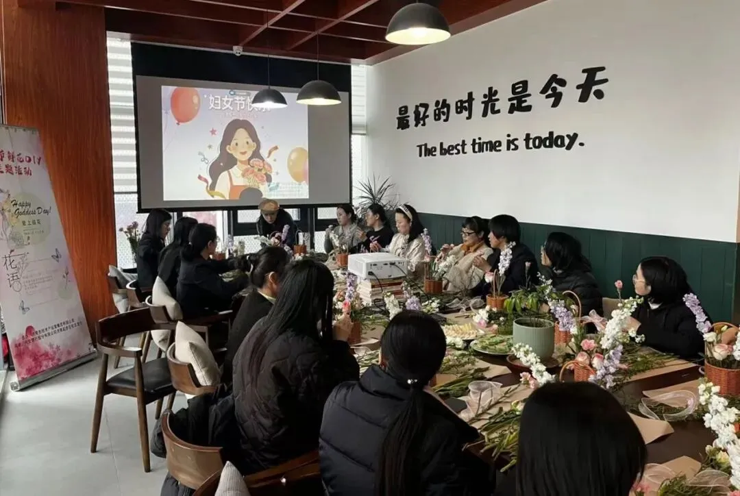 活动伊始,主持人向到场的各位女性同胞致以诚挚的节日祝福,详细介绍了活动流程与花艺小知识,拉开了本次插花活动的序幕。专业花艺老师现场授课,从花材识别、养护技巧,到构图原则、色彩搭配,再到造型设计、插花手法,都进行了细致讲解与生动示范。老师的讲解通俗易懂,现场示范直观清晰,让大家快速掌握了插花的核心技巧。