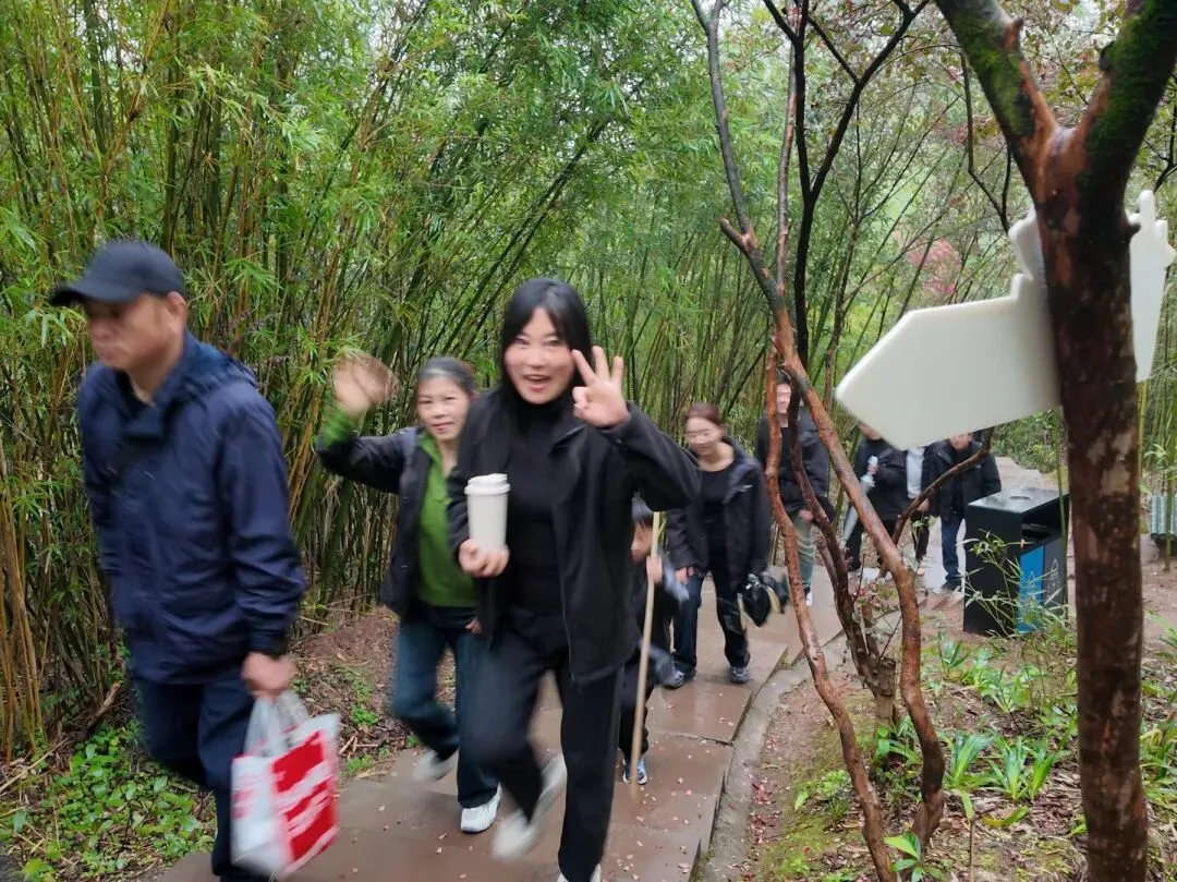 拾级而上,一路欢声笑语。同事们与家人结伴而行,穿梭在绿意盎然的山间,赏沿途风光、聊生活趣事,彼此搀扶、相互鼓劲。平日里并肩奋斗的伙伴,此刻化作同行的家人;忙碌的职场人,此刻回归温情的陪伴,轻松惬意的氛围洒满登山之路。林间空气清新,鸟鸣阵阵,每一步攀登,都是与自然的拥抱,也是与身边人的暖心相伴。